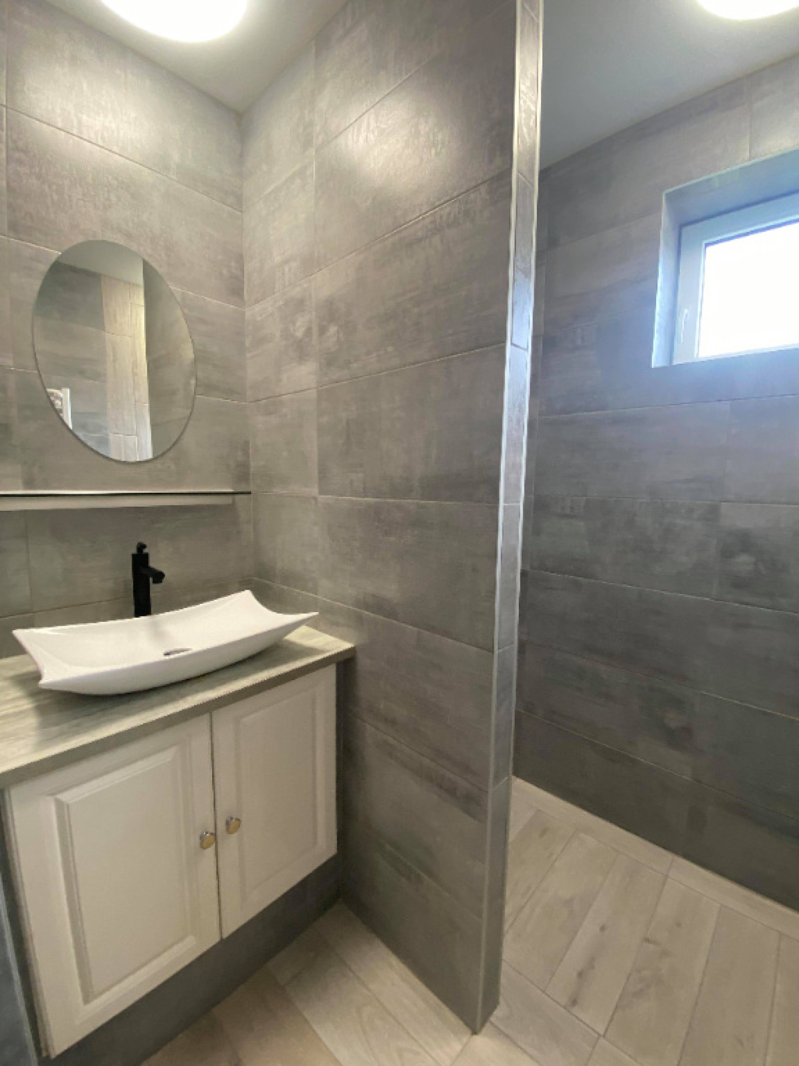 Elle comprend : Entrée, dégagement, salon-séjour, cuisine aménagée, placard, dégagement, salle d'eau rénovée récemment, 1 chambre, wc indépendant. 1 garage (1VL),