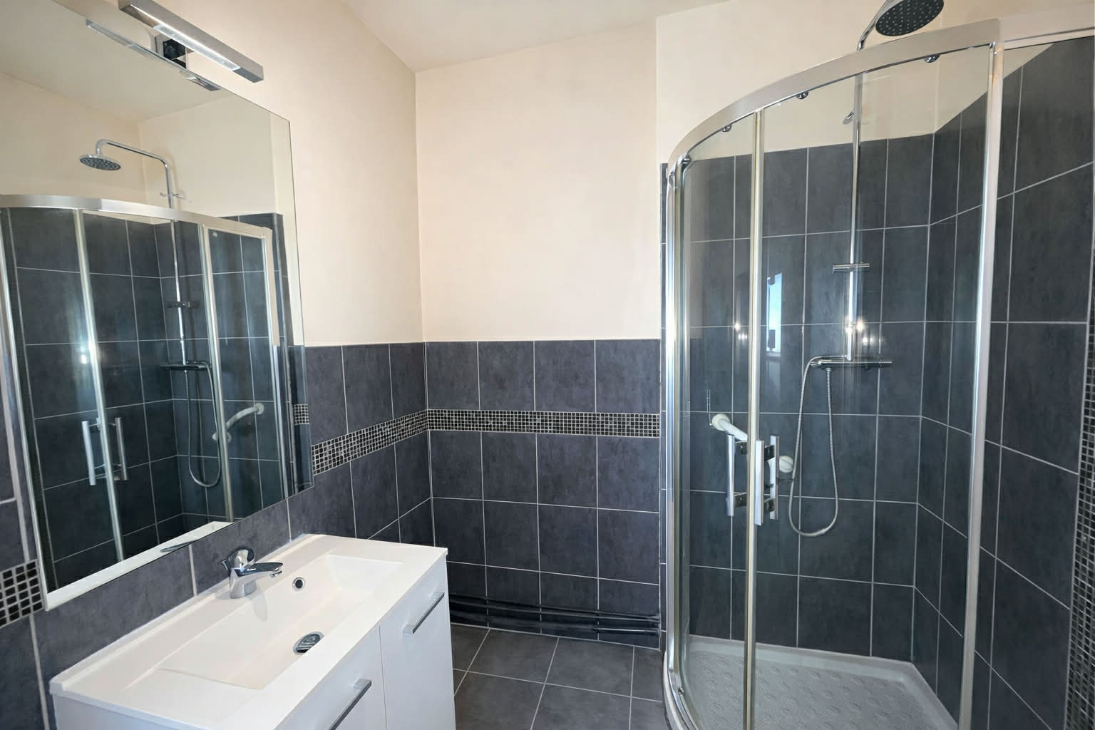 Grande entrée avec placards, salon-séjour, cuisine indépendante et aménagée, une chambre, une salle d'eau (simple vasque, douche, sèche-serviettes), un WC indépendant.