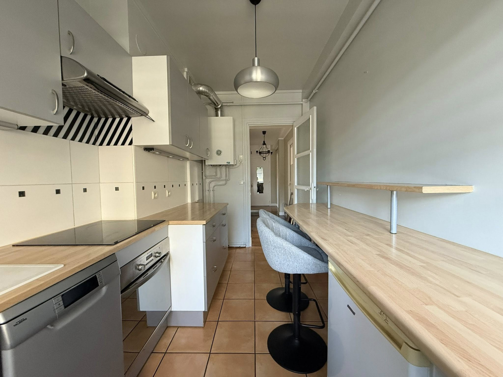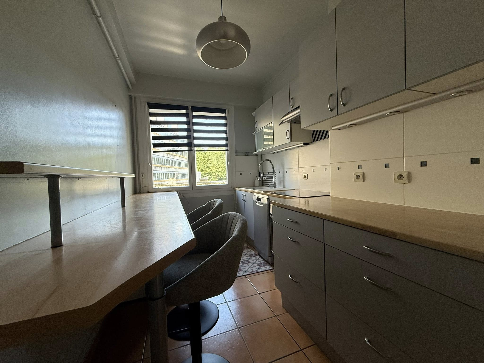 Entrée, dégagement avec grand placard, WC indépendant, une cuisine équipée indépendante (four, lave-vaisselles, plauqe à induction, hotte, coin repas avec deux chaises), une chambre (le dressing restera), une salle d'eau (douche spacieuse, sèche-serviettes), salon salle à manger accès balcon.