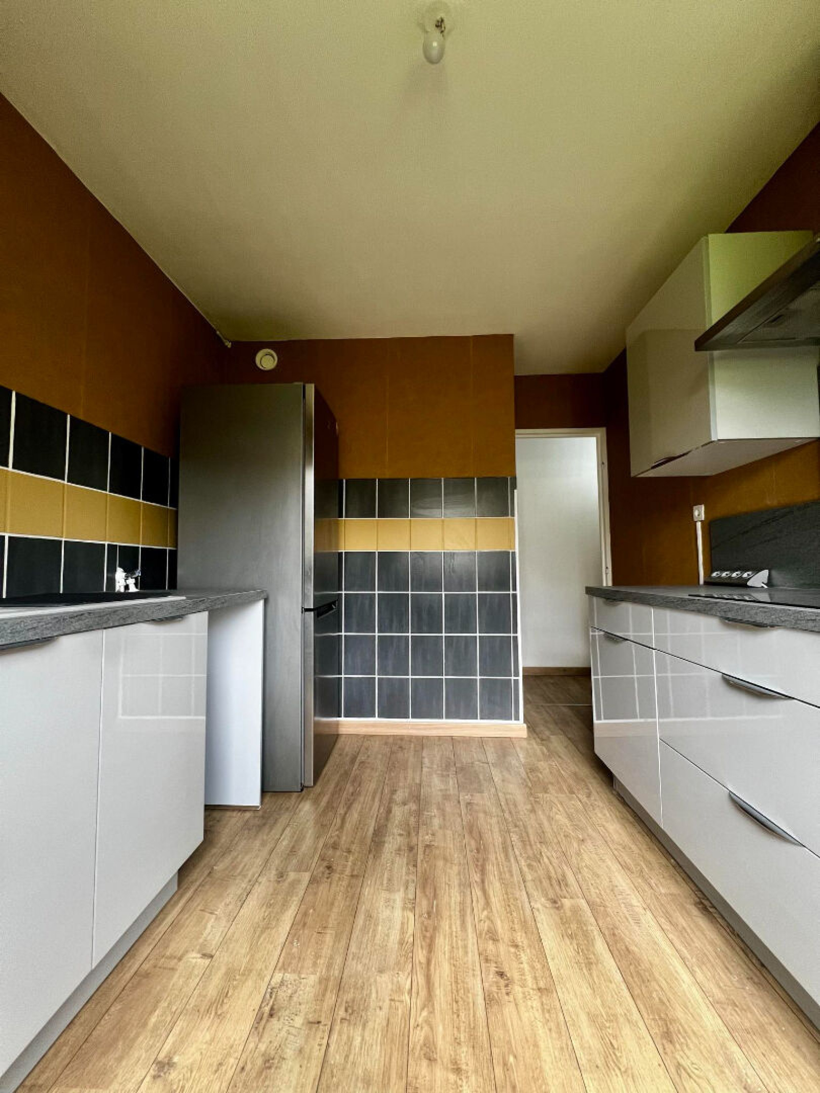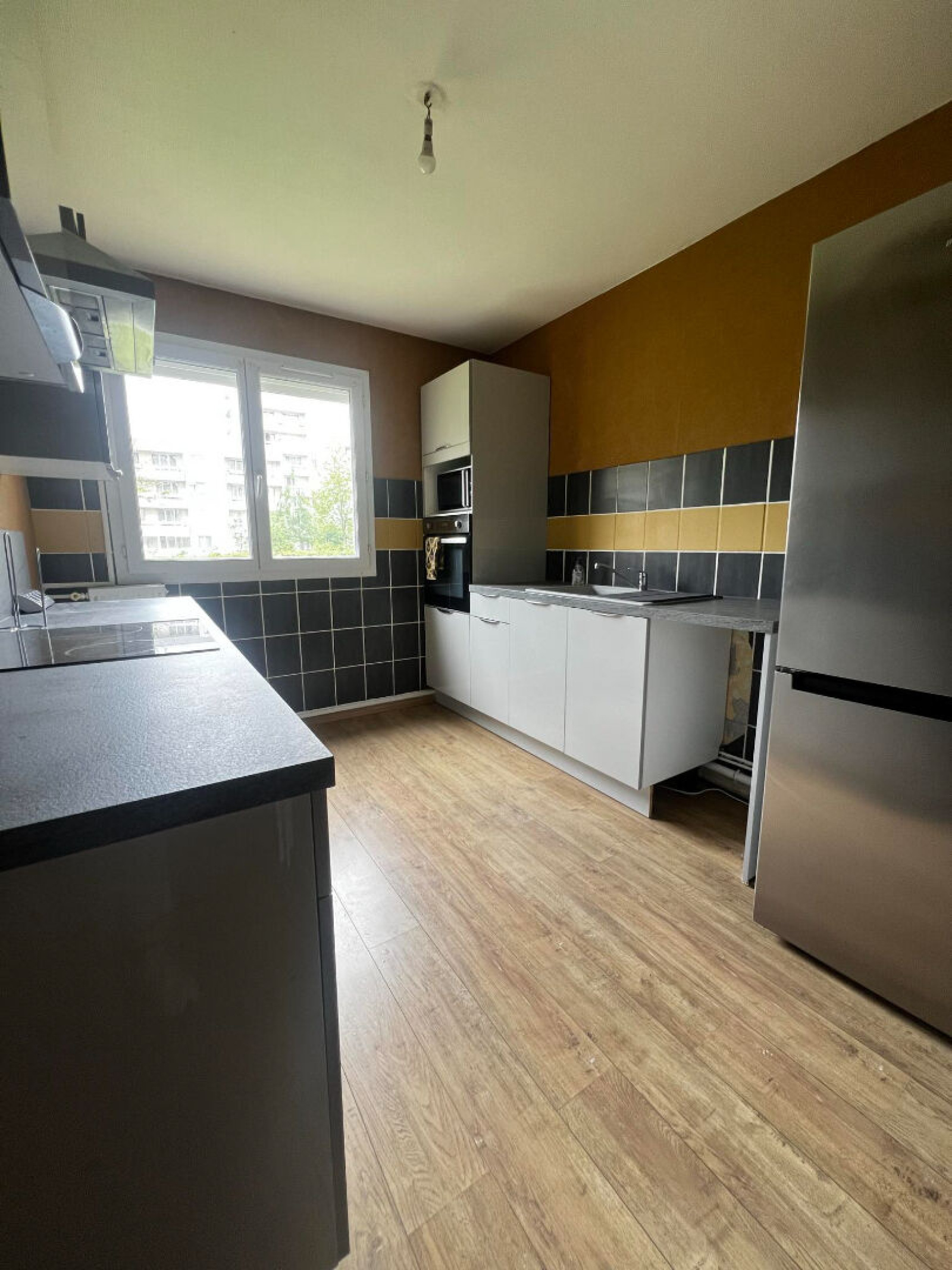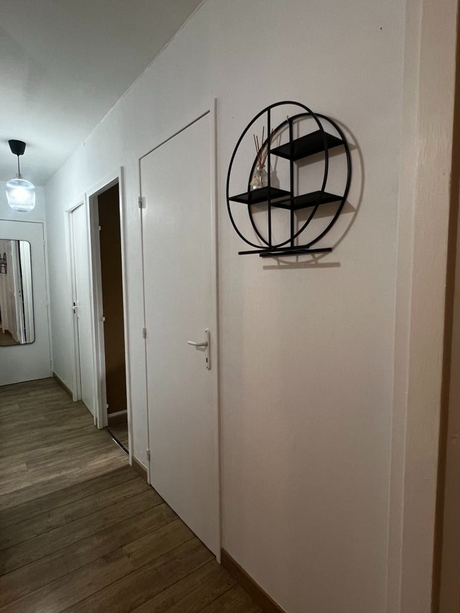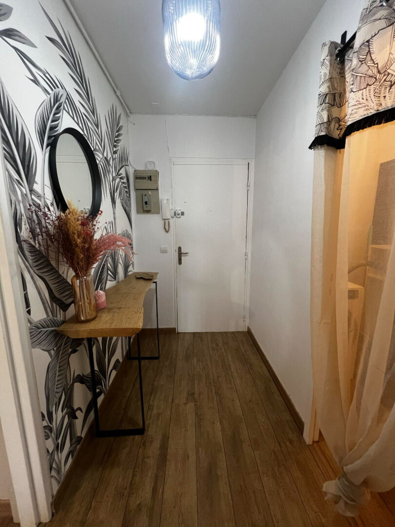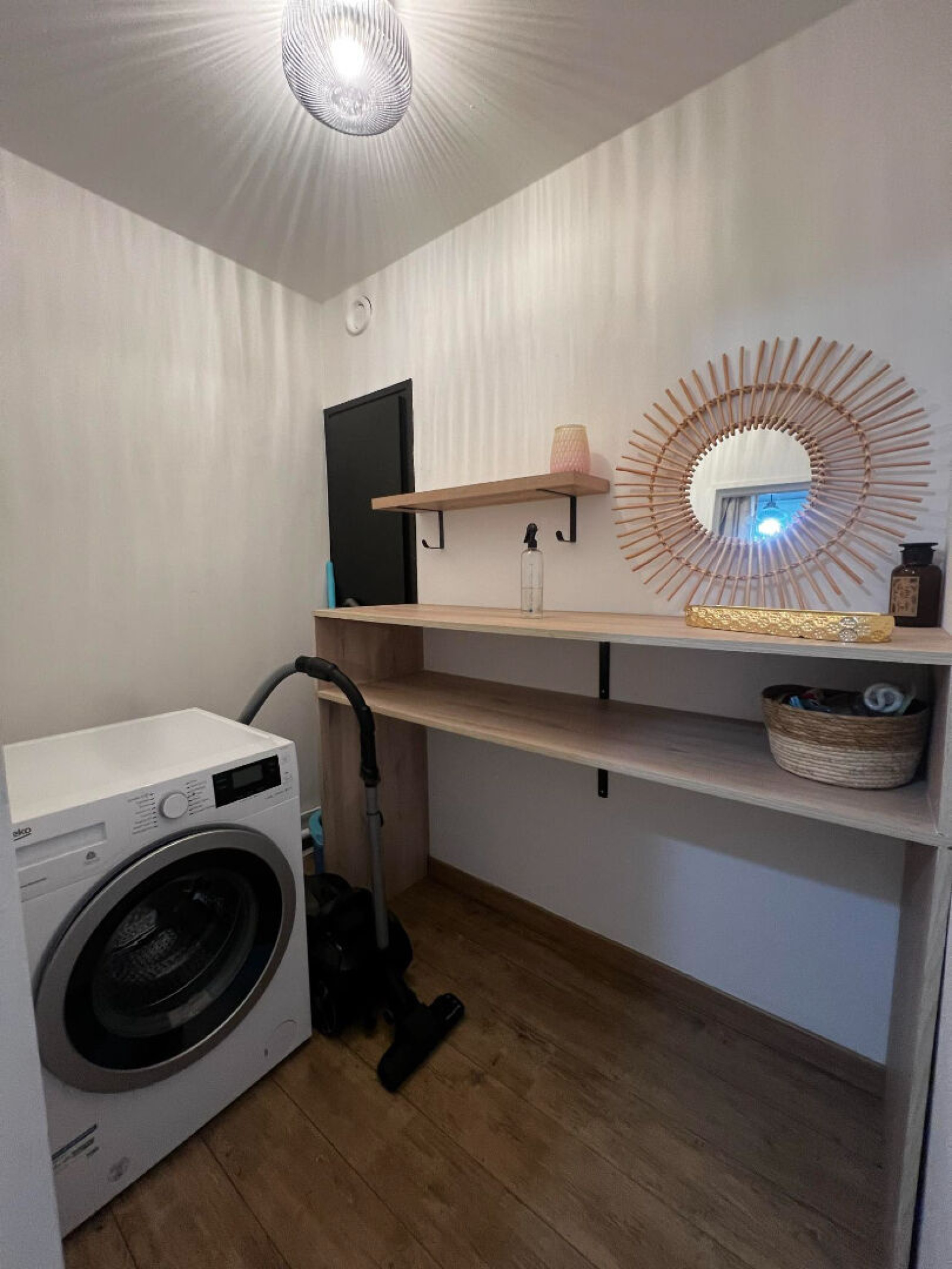 Cet appartement se compose ainsi : Entrée accueillante avec espace Buanderie aménagé et fonctionelle. Cuisine séparée et équipée ( meubles bas et hauts, four plaque et hotte ainsi qu'un emplacement prévu pour un lave-vaisselle).