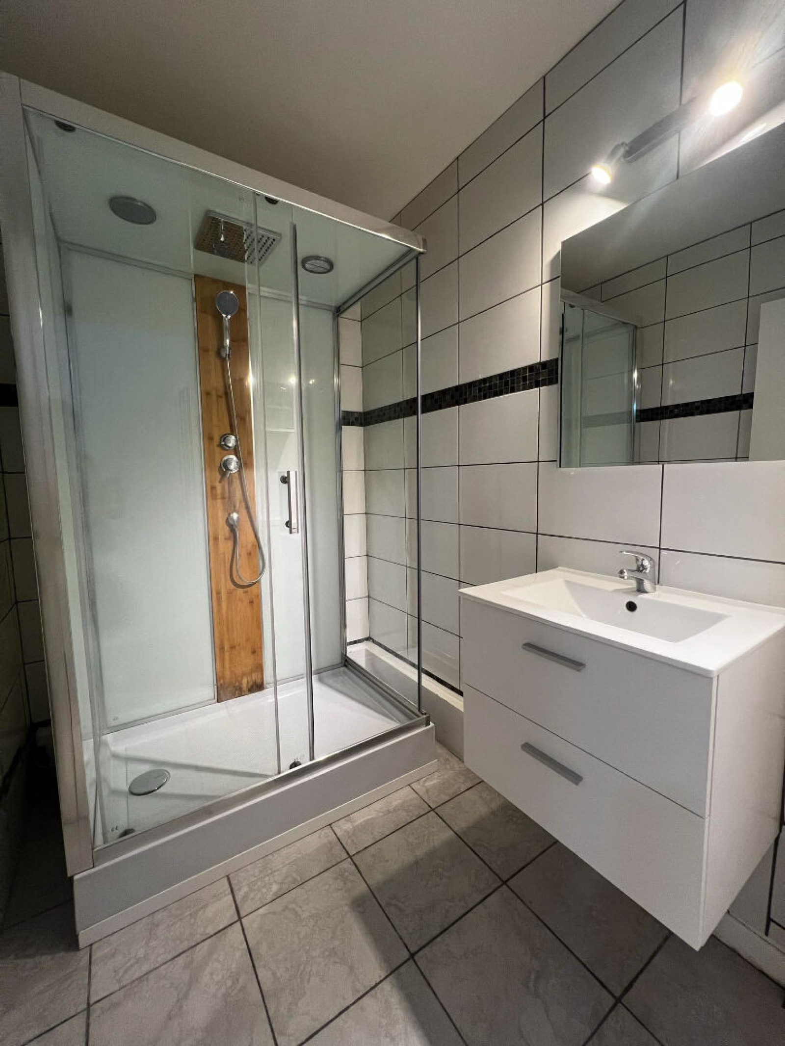 - 1 WC indépendant et 1 salle d'eau contemporaine avec sa cabine de douche XL.