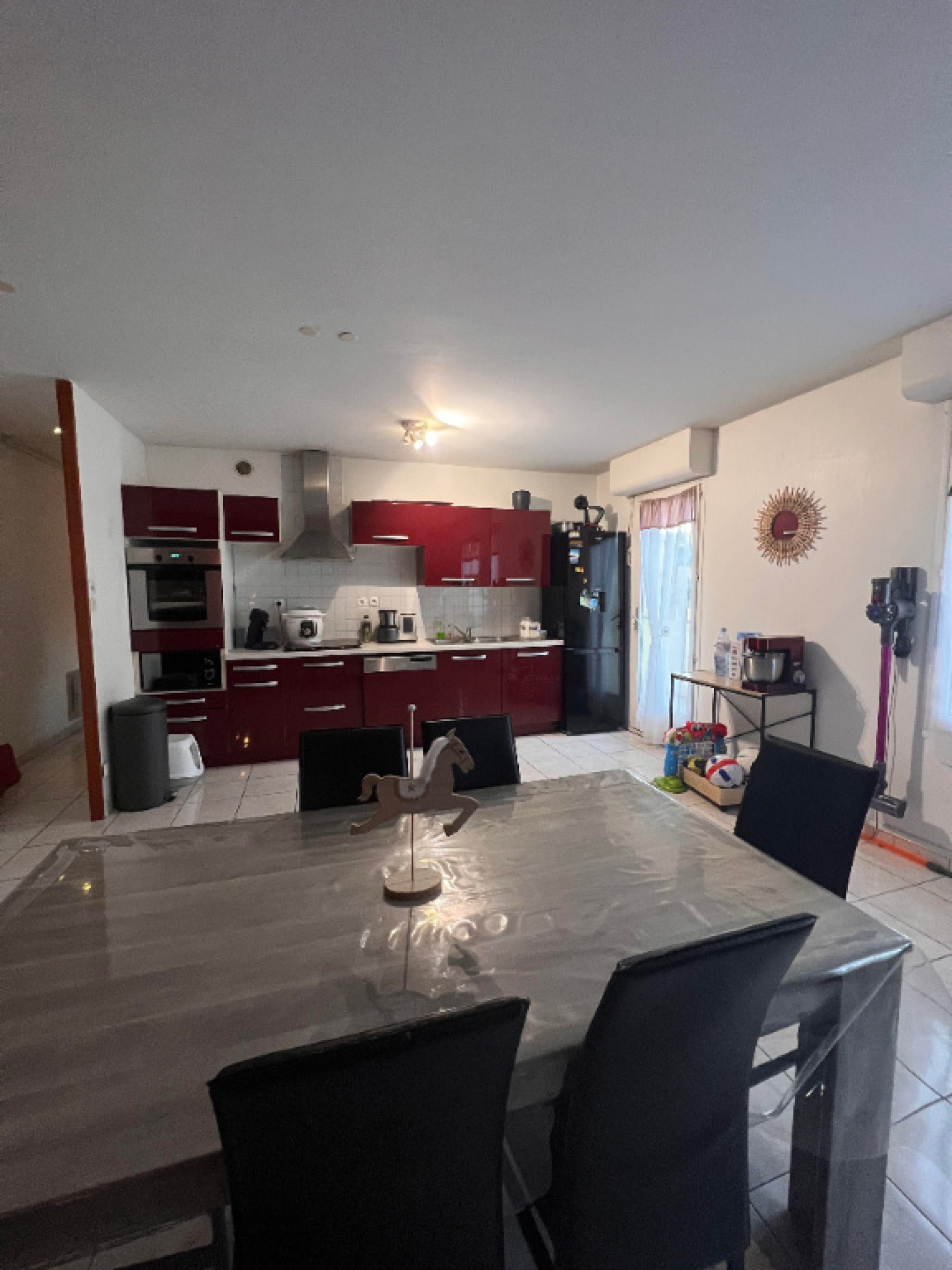 Entrée avec placards, dégagement, cuisine entièrement équipée avec accès sur balcon, salon.
