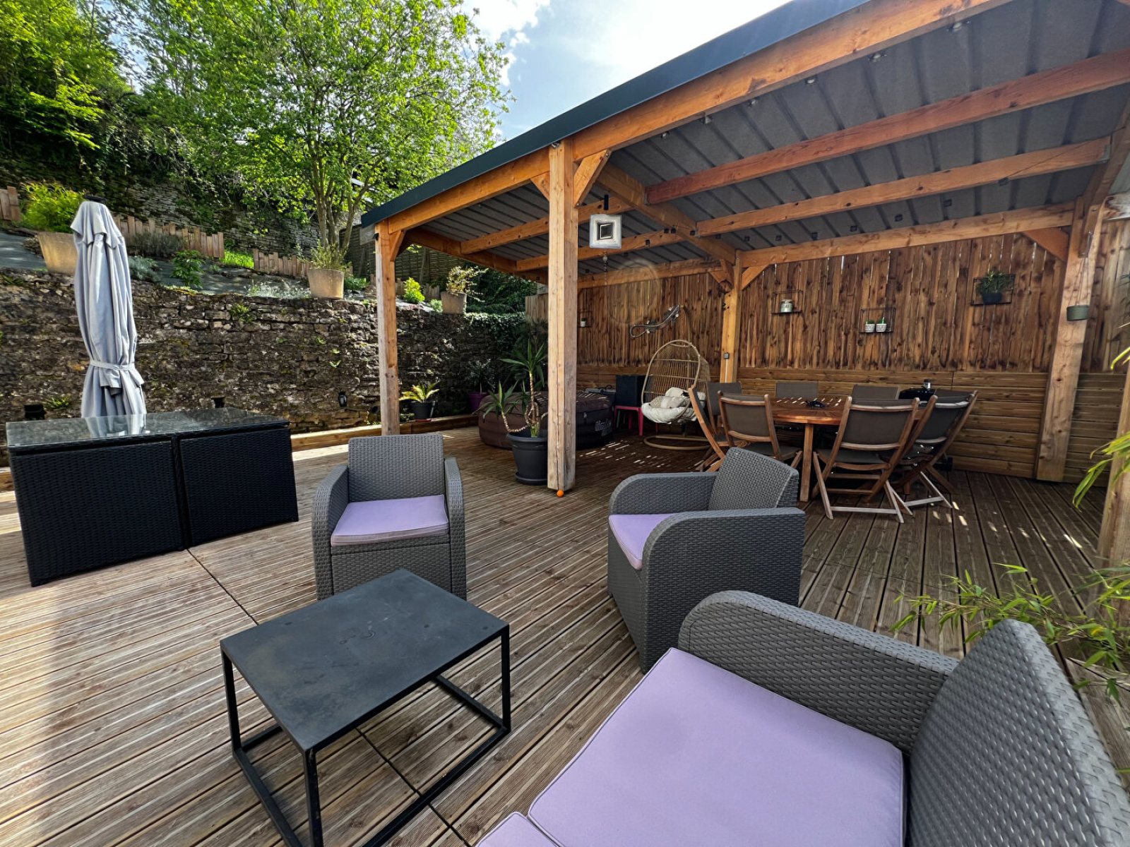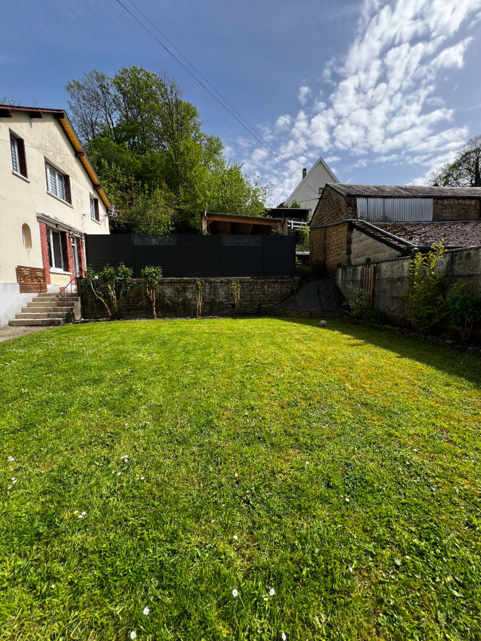 Sedan (08200)Maison entièrement rénovée en 2020 avec garage et dépendance, terrain et terrasse couverte par une pergola. Le tout entièrement clos de murs. (618 m2). Portail Alu motorisé.