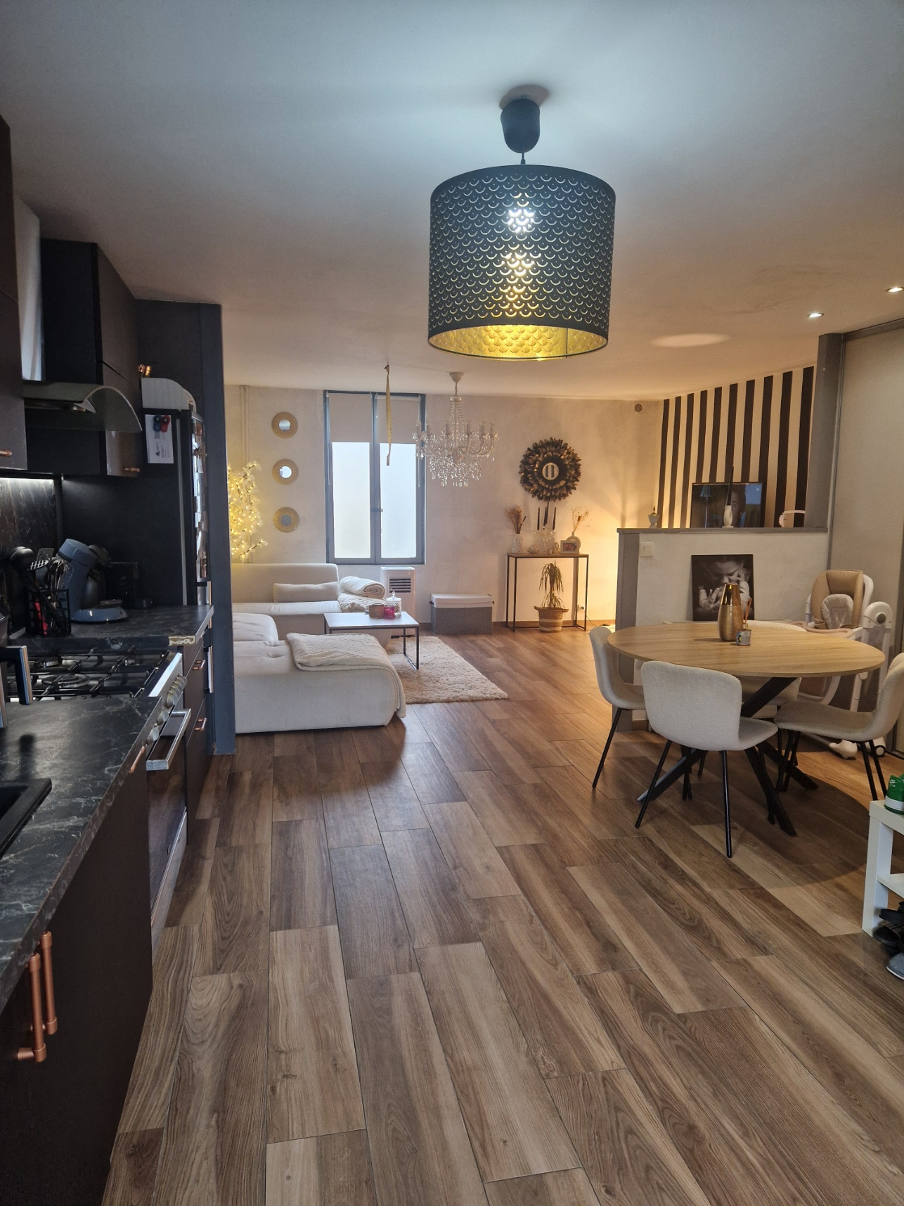 Maison mitoyenne d'un côté, entiérement rénovée, cuisine équipée moderne et récente.