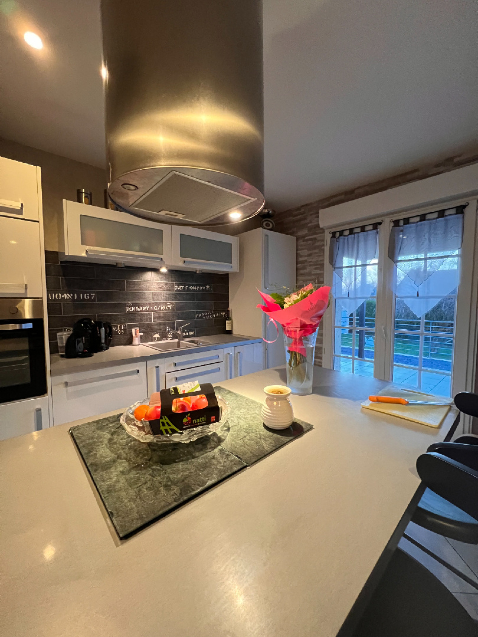 Entrée avec Dressing, grande pièce de vie lumineuse de 42 m2 avec cuisine équipée et aménagée.