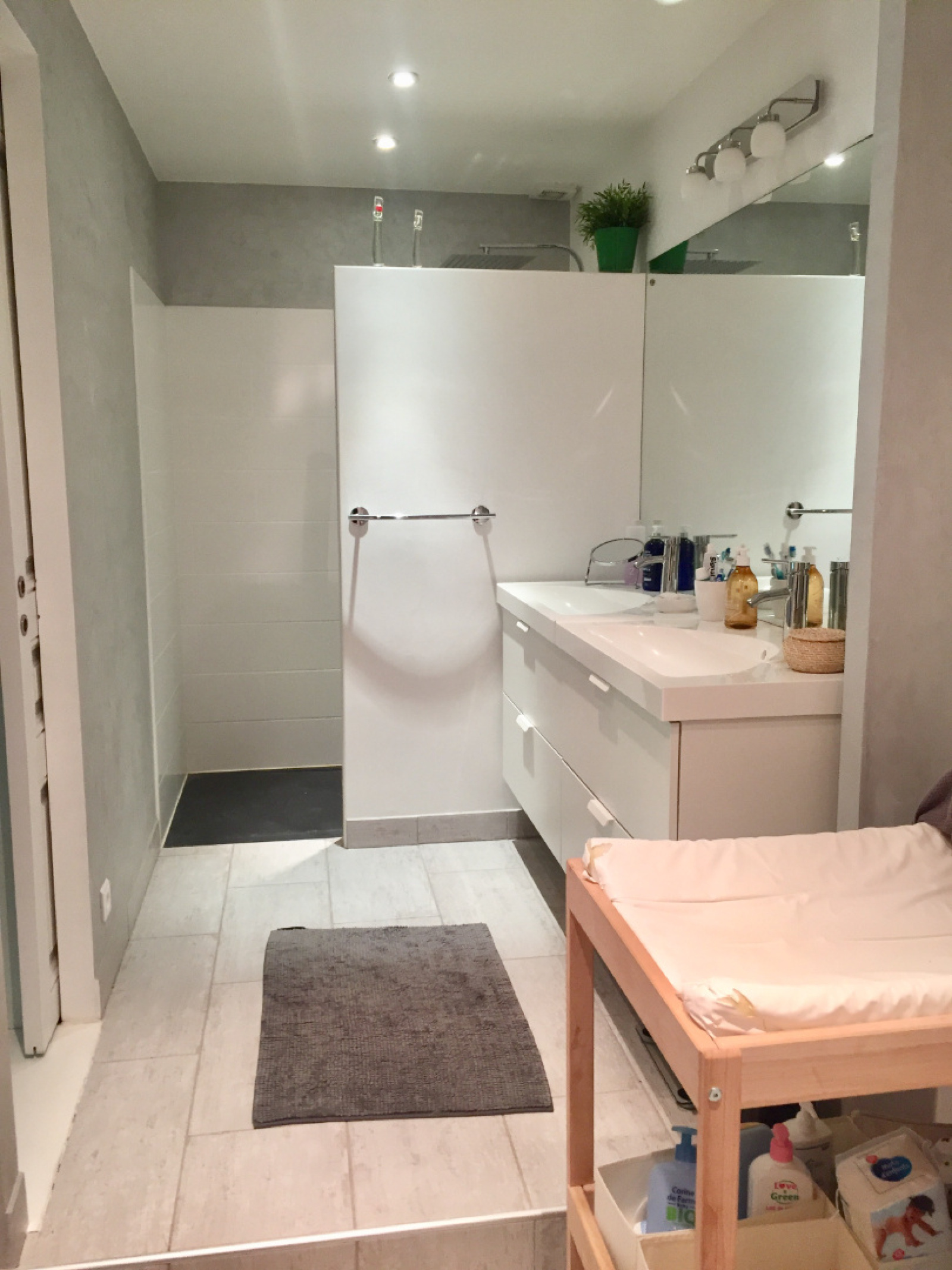 1er étage : Palier, 2 chambres, lingerie, salle d'eau (cabine de douche et double vasque) WC.