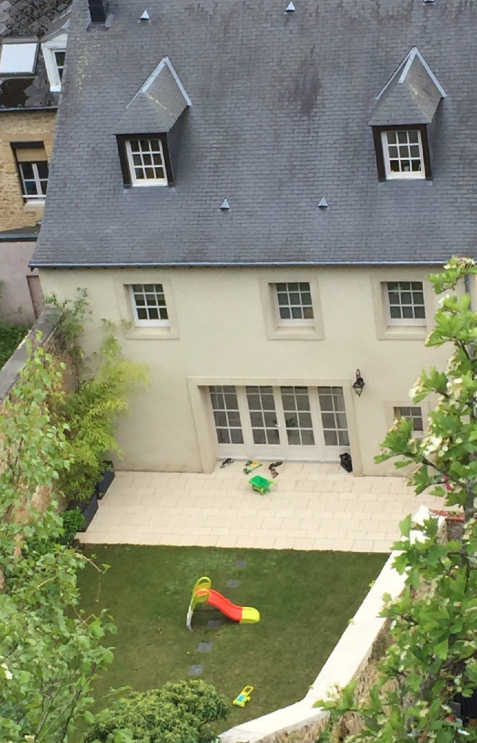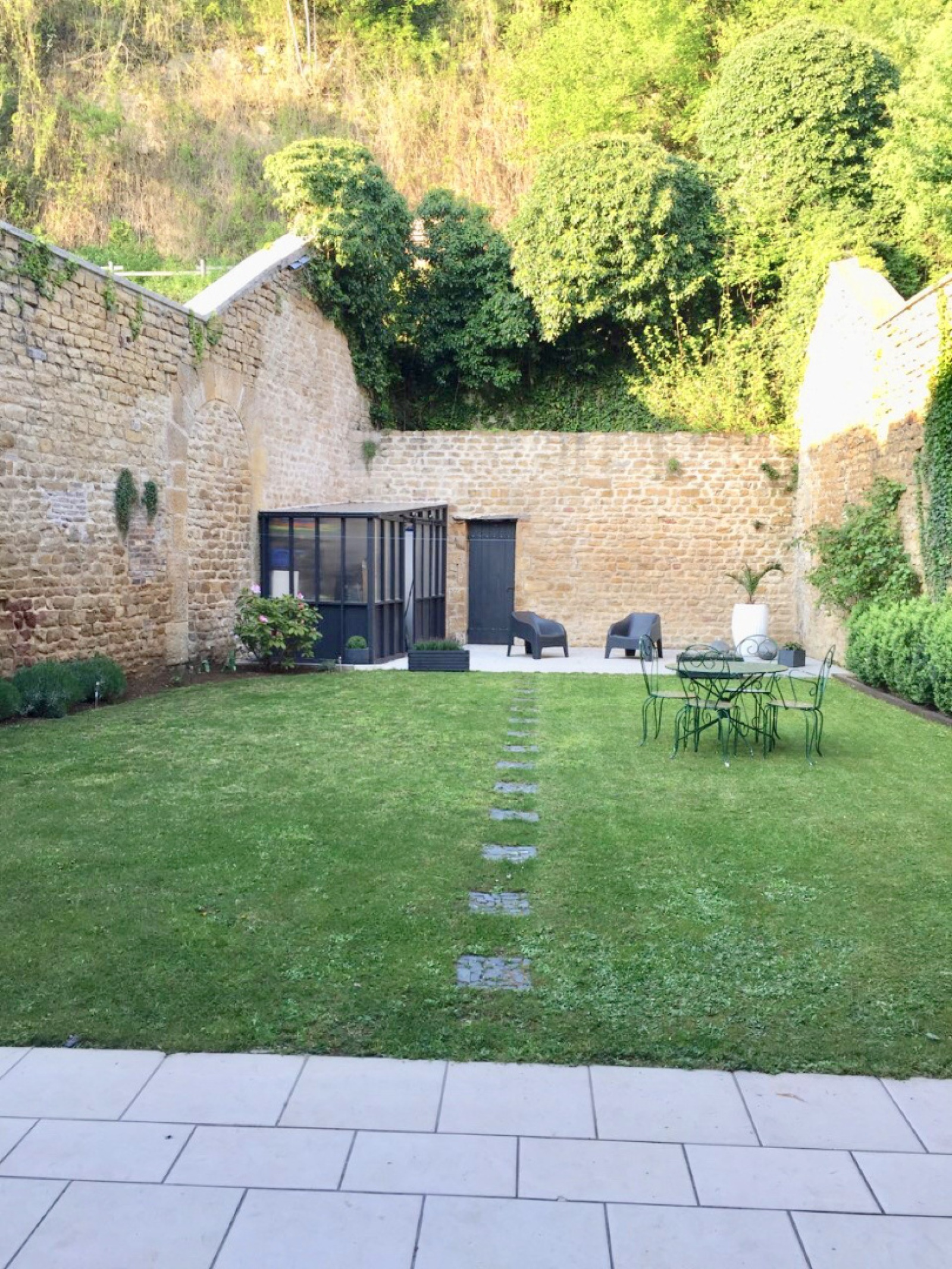 Terrain clos et terrasse (400 m²) avec atelier parisien.