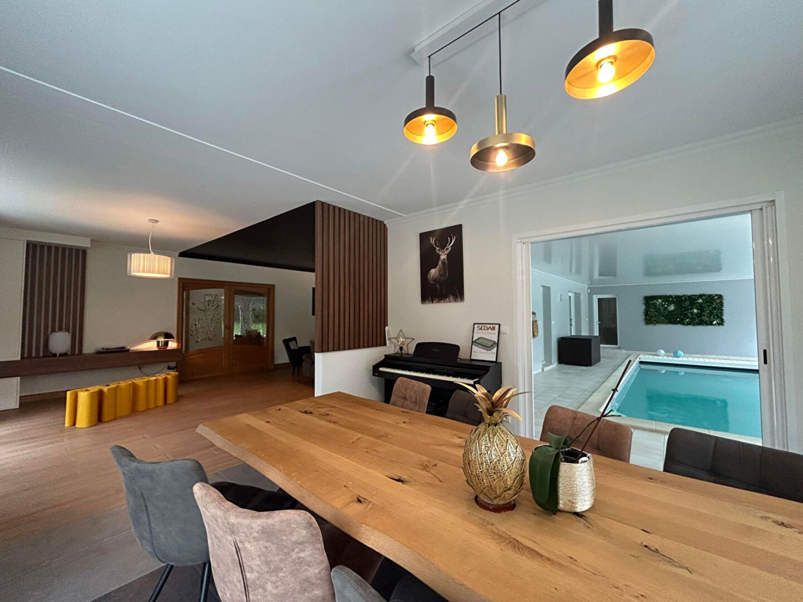 Aiglemont (08090)A quelques kilomètres du centre ville de Charleville-Mézières, à quelques minutes de la gare, découvrez cette somptueuse villa, offrant des prestations haut de gamme et un cadre de vie unique et calme SPECIAL INVESTISSEUR, ou idéal pour du AIRBNB!!! Située sur un magnifique terrain de 3 000m² avec kiosque, cette propriété de prestige comprend une piscine intérieure accès direct sur le salon, idéale pour des moments de détente en toute saison. Elle comprend 6 chambres spacieuses, 4 salles de bains modernes, et un sauna pour des moments de relaxation.