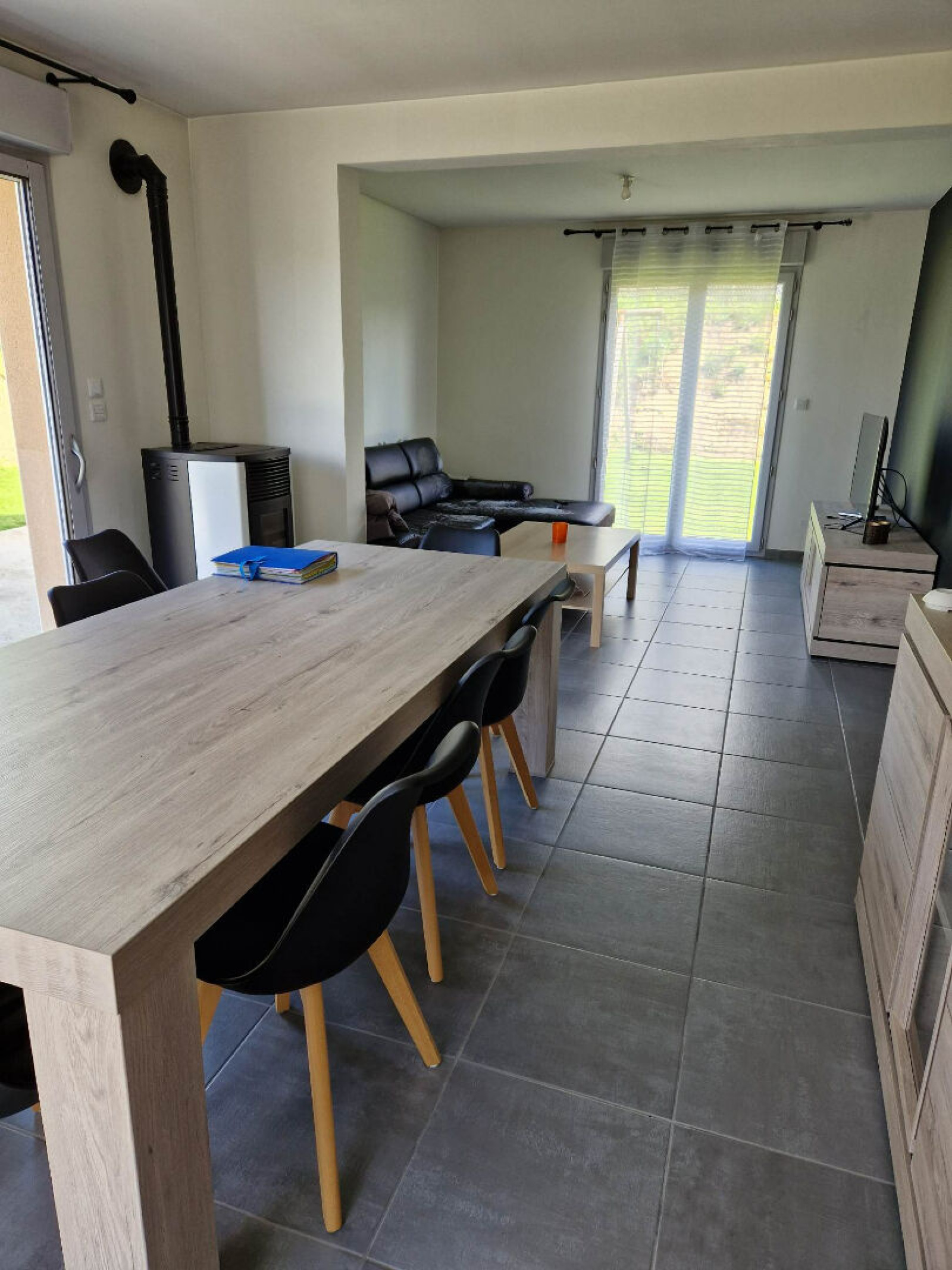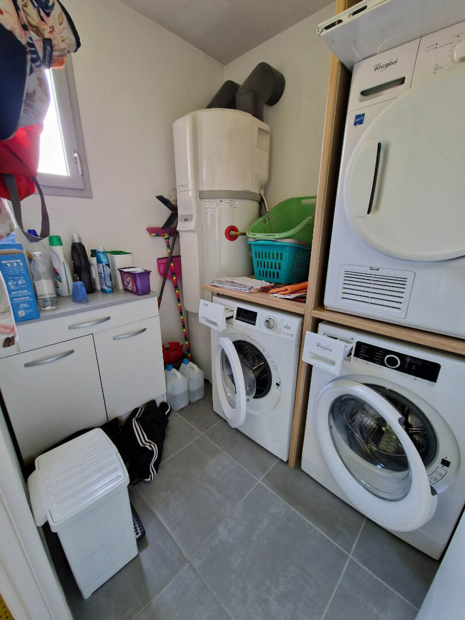 Chauffage: poêle à granulés et électrique Double vitrage avec volets électriques au RDC, et velux avec rideau à l'étage. Ballon production d'eau chaude.
