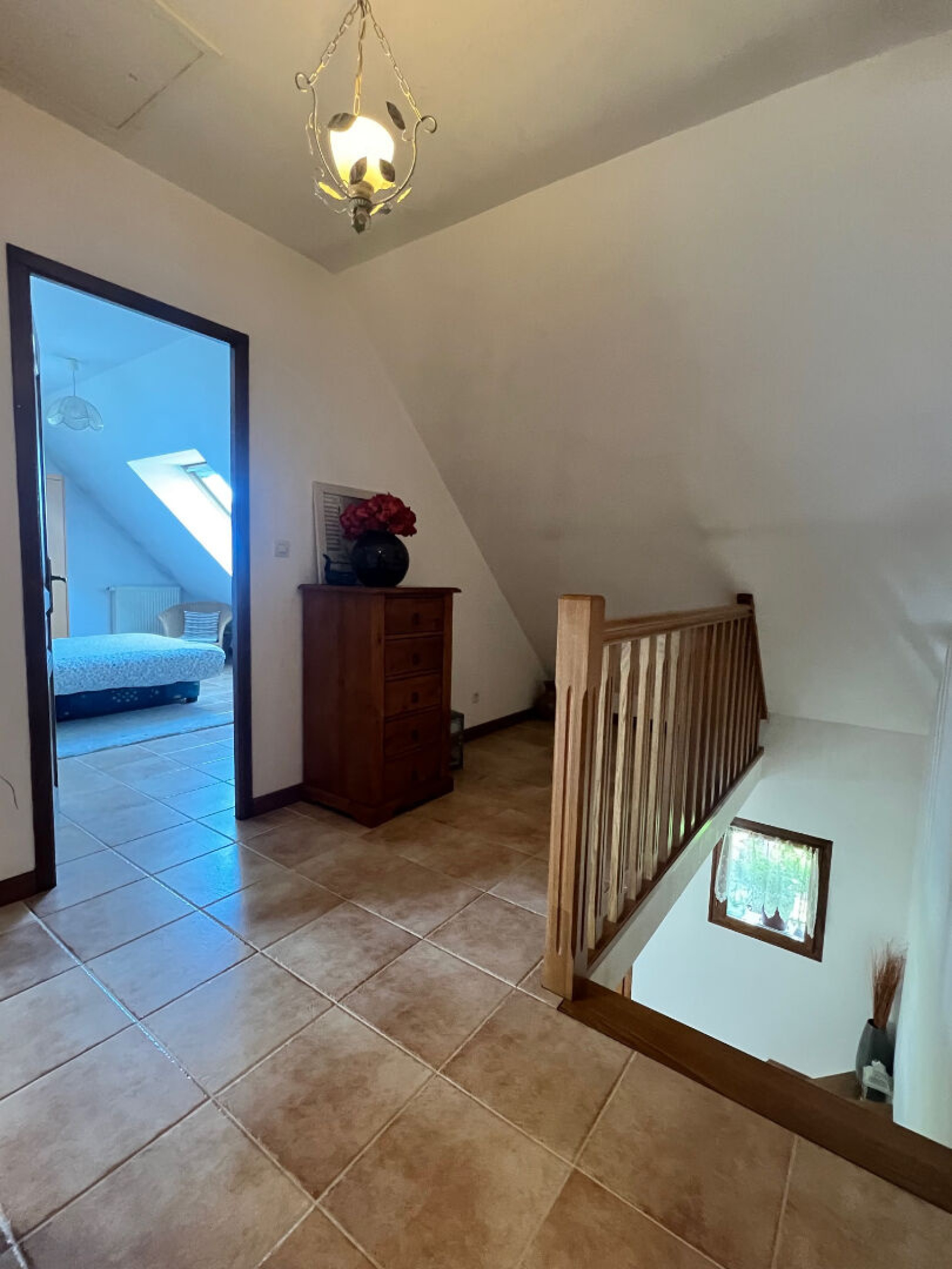 Au premier étage: un palier desservant une chambre mansardée avec placards intégrés, une salle d'eau, une chambre avec dressing, et une dernière chambre.