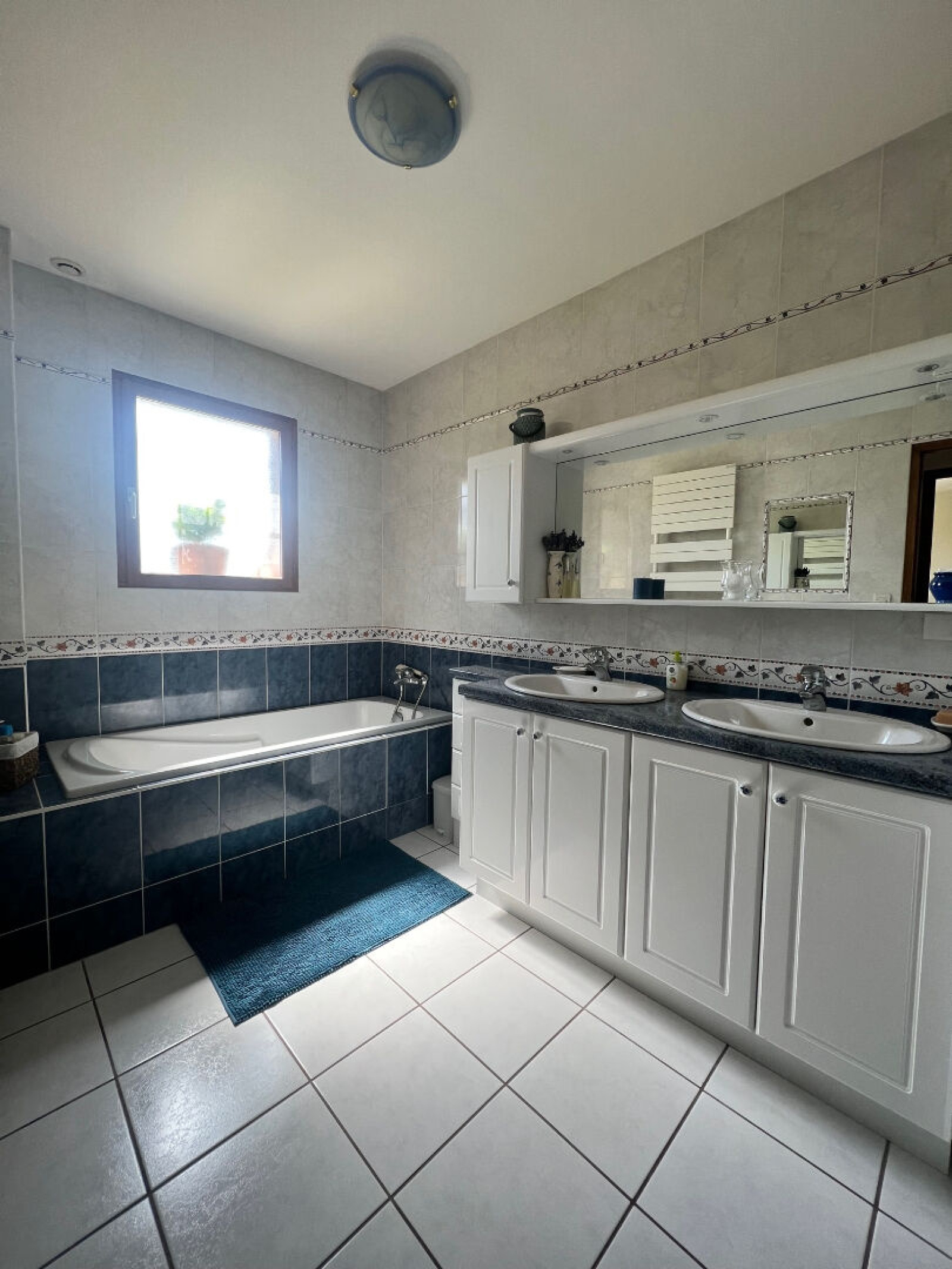 Cette maison se compose d'une entrée desservant: Un espace de vie très confortable avec un salon séjour lumineux et son accès direct à une terrasse exposée sud. Une cuisine aménagée et indépendante (gazinière, et réfrigérateur) avec des nombreux rangements. Un WC indépendant, un bureau ( pouvant faire office de 4ème chambre°. Une salle de bains ( double vasque, baignoire, sèche serviettes.)Accès au sous-sol.