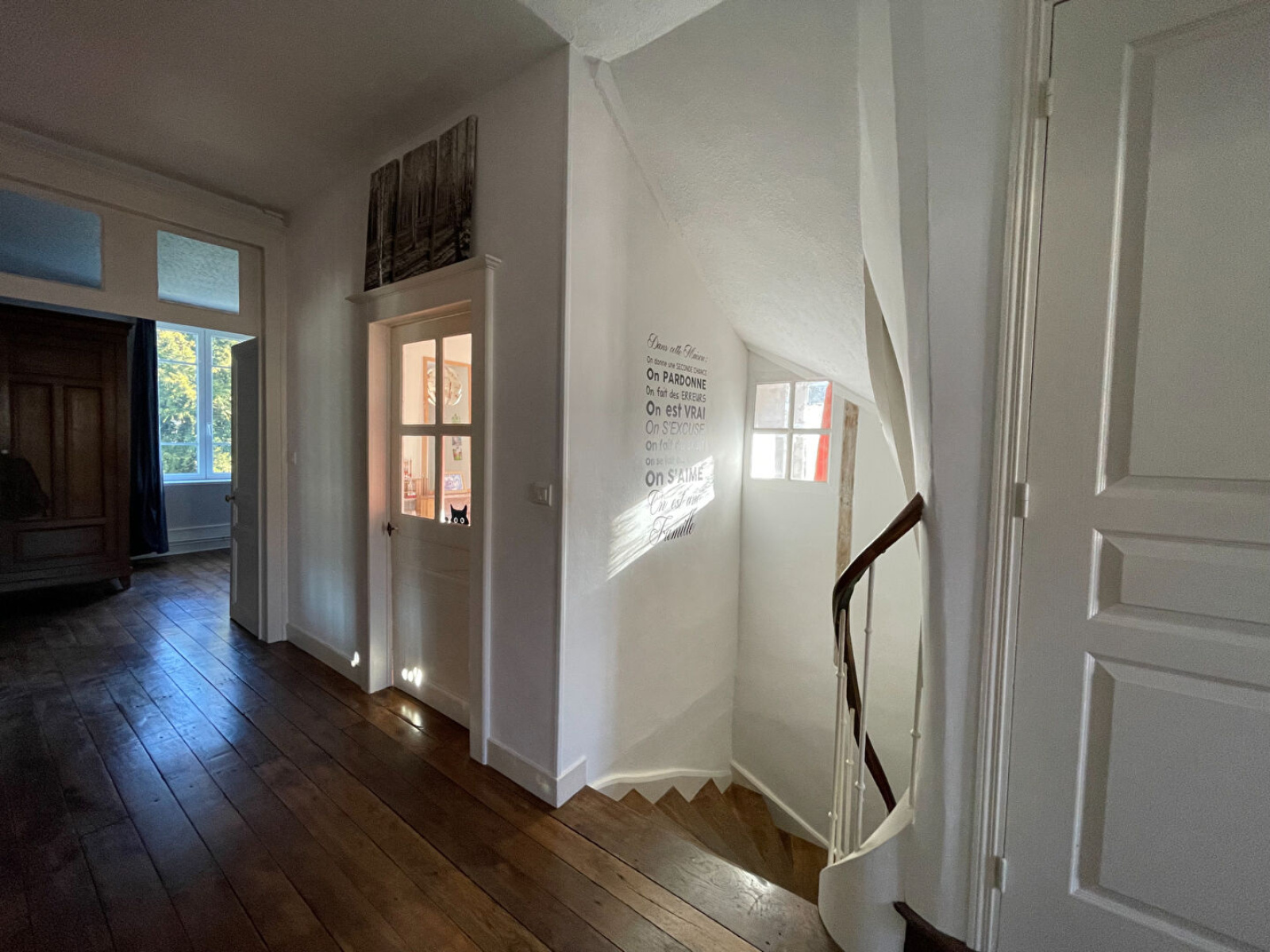 Au premier étage, un palier desservant 4 chambres chambres avec rangements, dont une avec une salle d'eau privative. Le parquet de chêne et les cheminées apportent un charme à chaque espace. Une seconde salle de bains avec sauna et WC indépendant viennent terminer ce niveau.