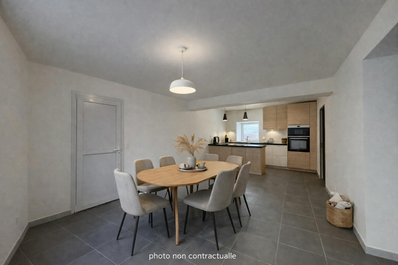 Au rez-de-chaussée, vous serez accueilli par une entrée donnant sur une agréable pièce de vie lumineuse et spacieuse. Un espace buanderie/cellier ainsi qu’un WC indépendant complètent ce niveau.