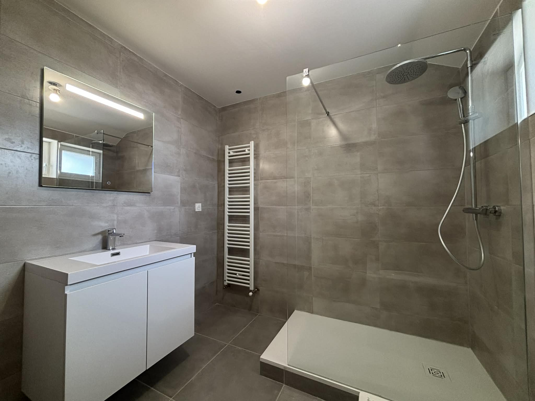 À l’étage, l’espace nuit se compose de trois chambres confortables, une salle de bains avec une douche à l’italienne et une baignoire, ainsi qu’un WC indépendant.