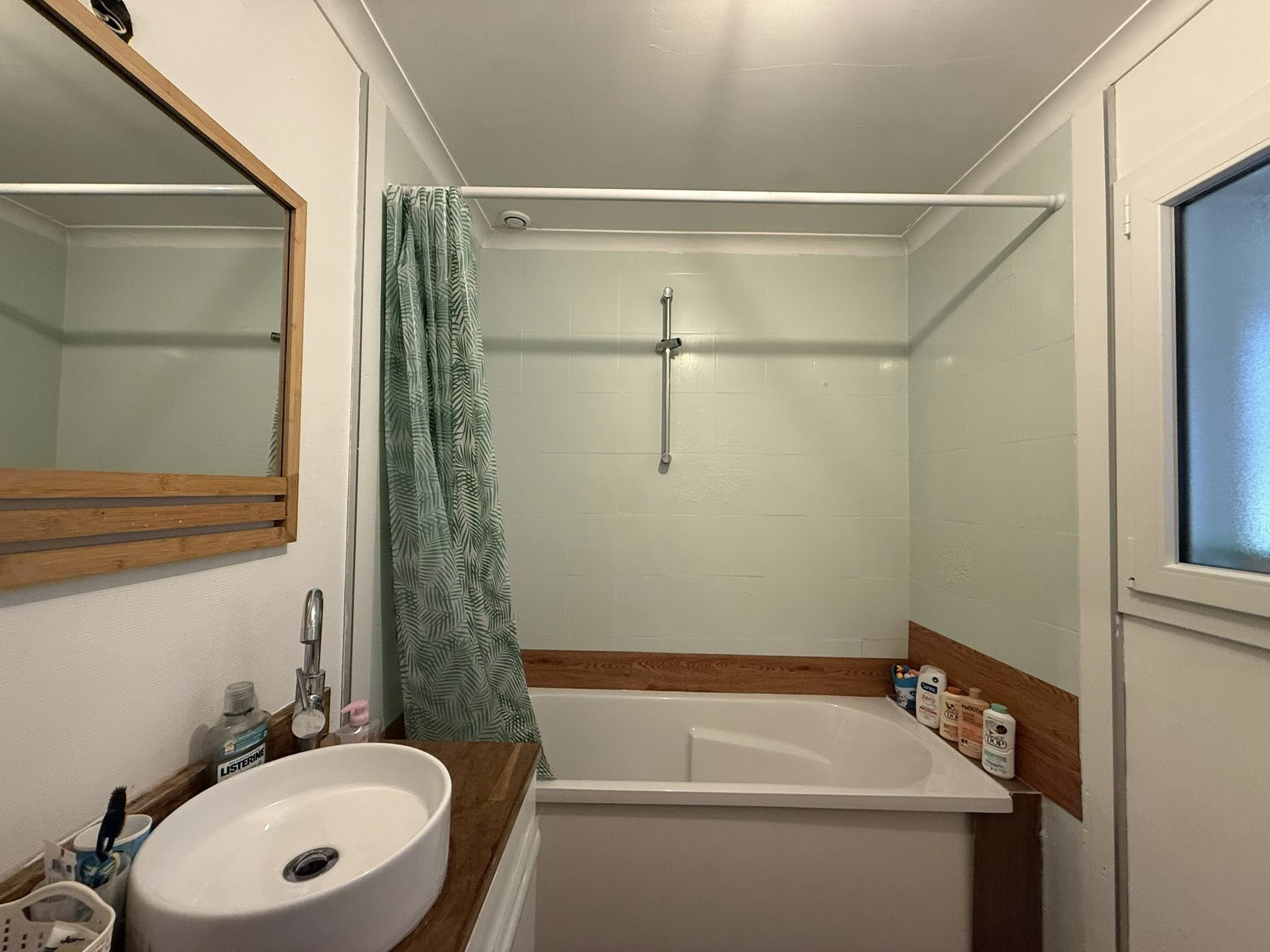 Rez-de-chaussée: Une véranda / buanderie, salon-séjour accès terrasse, une cuisine équipée, une salle de bains, WC indépedant, une chambre.