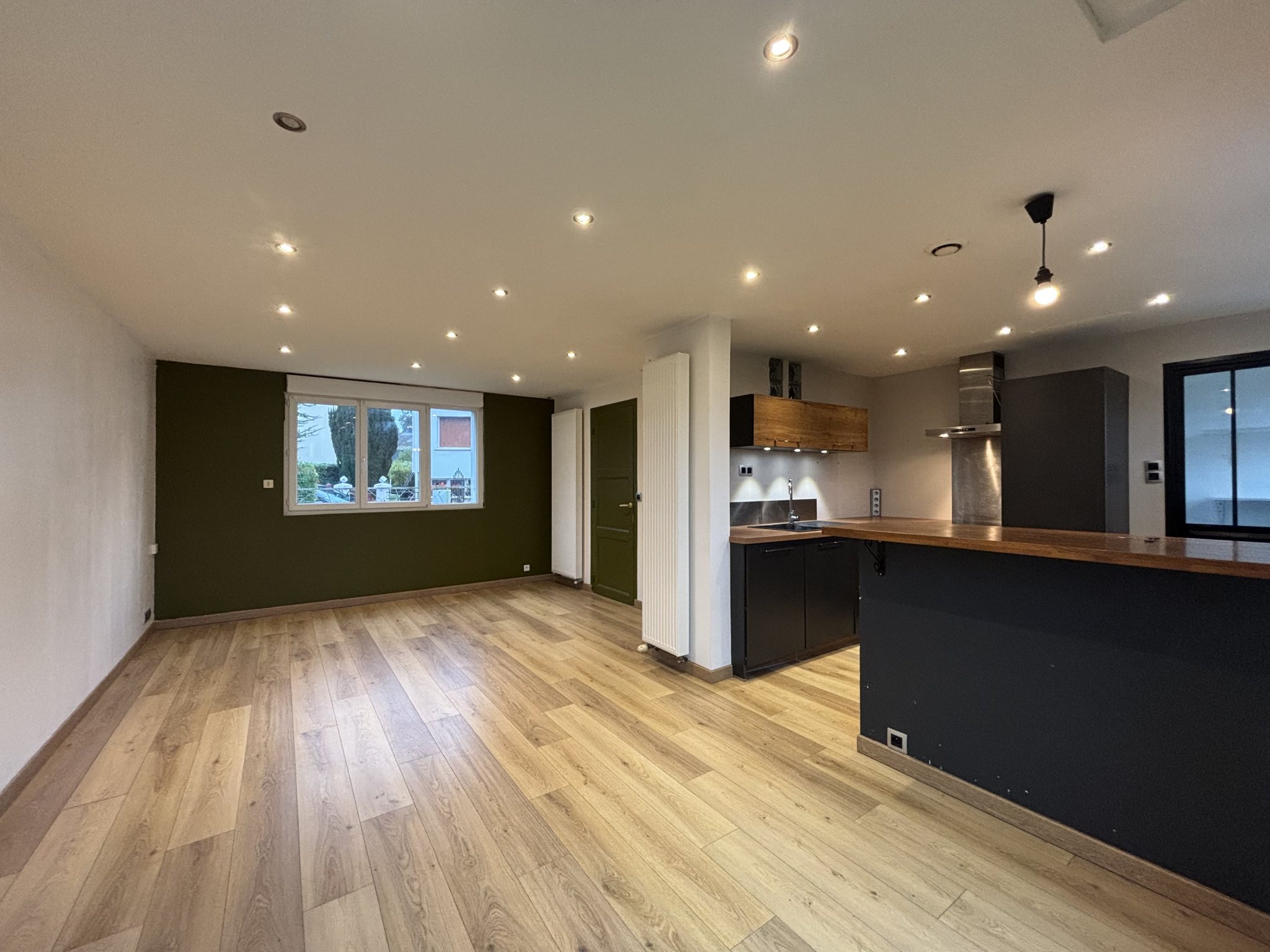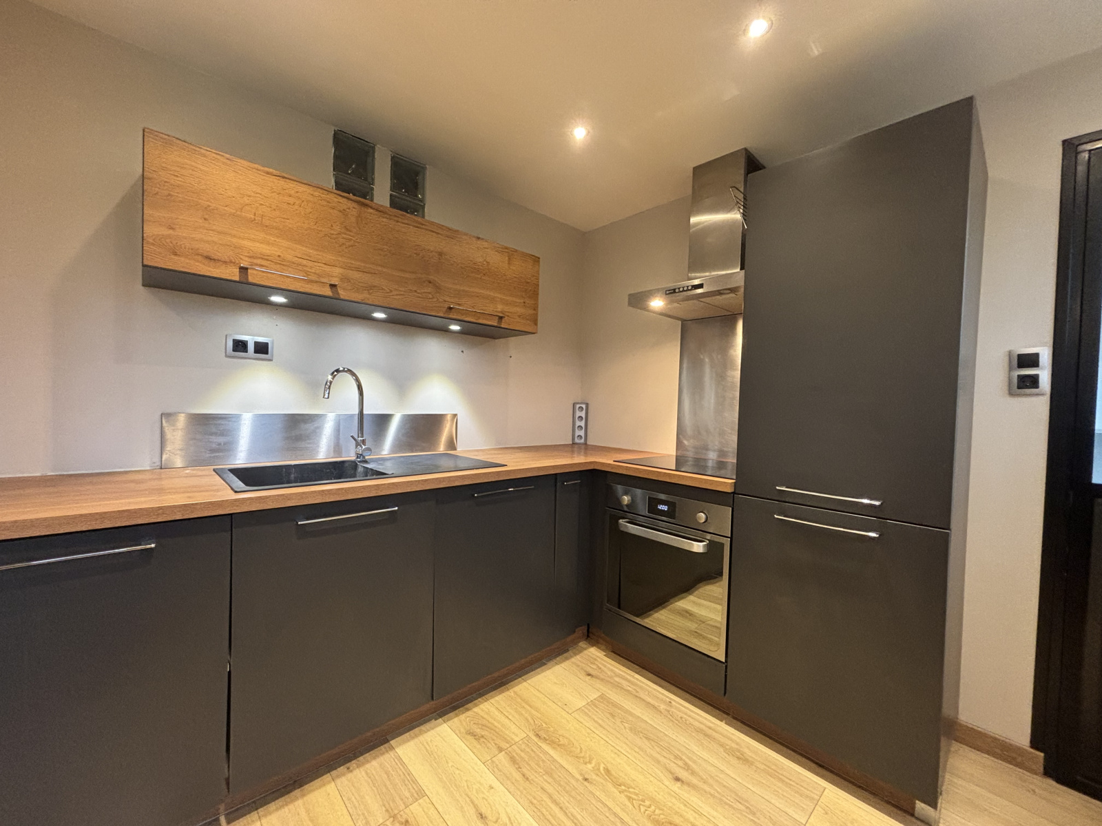 Au rez-de-chaussée, une entrée accueillante avec un WC indépendant, un espace buanderie-chaufferie, un dégagement menant à une agréable pièce de vie comprenant un salon et une cuisine ouverte équipée (four,plaque, hotte, frigo), avec un accès direct sur le terrain. Une arrière-cuisine vient compléter ce niveau.