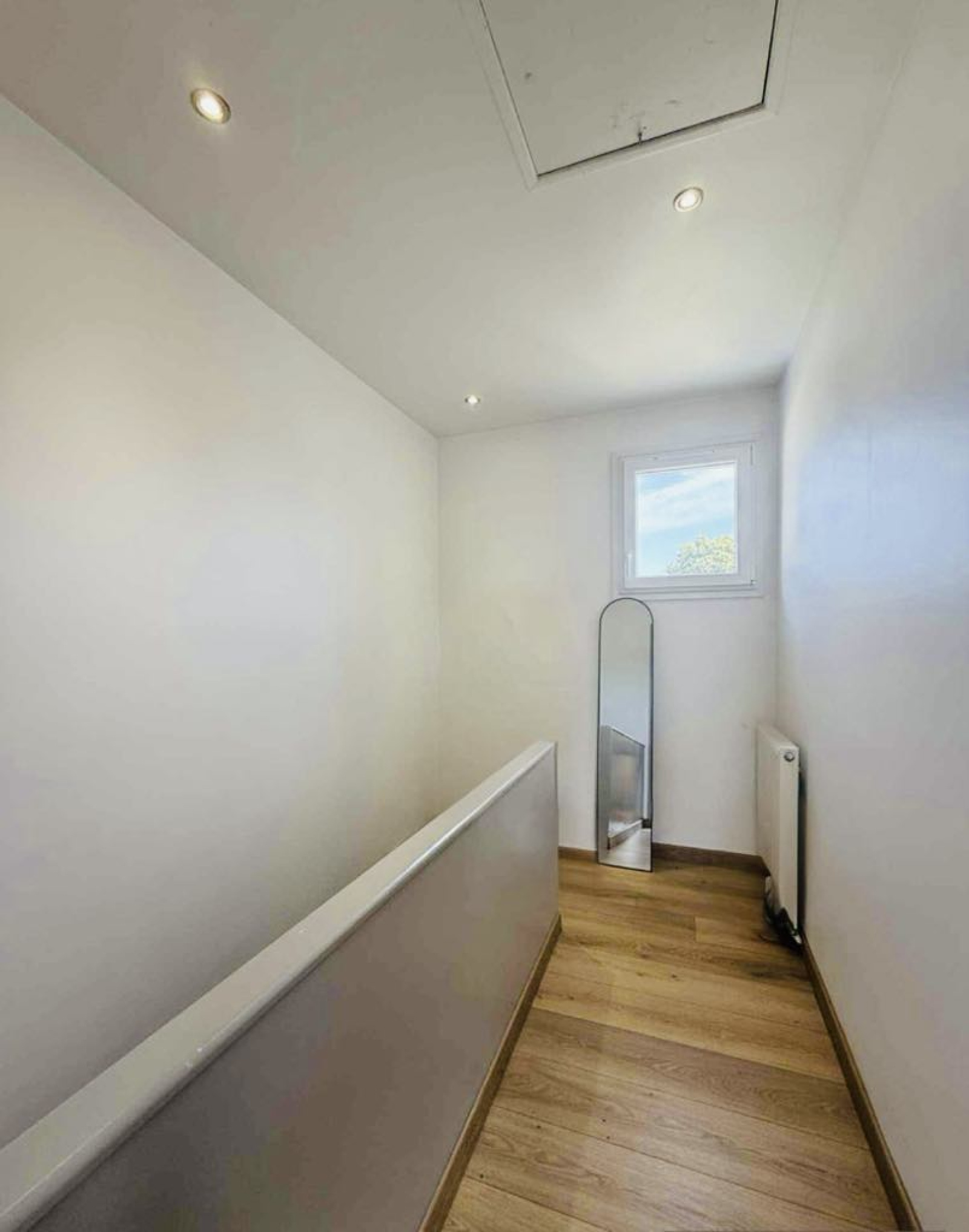 Au 1er étage, un palier desservant 3 chambres dont une avec rangement intégré, ainsi qu'une salle d'eau lumineuse.