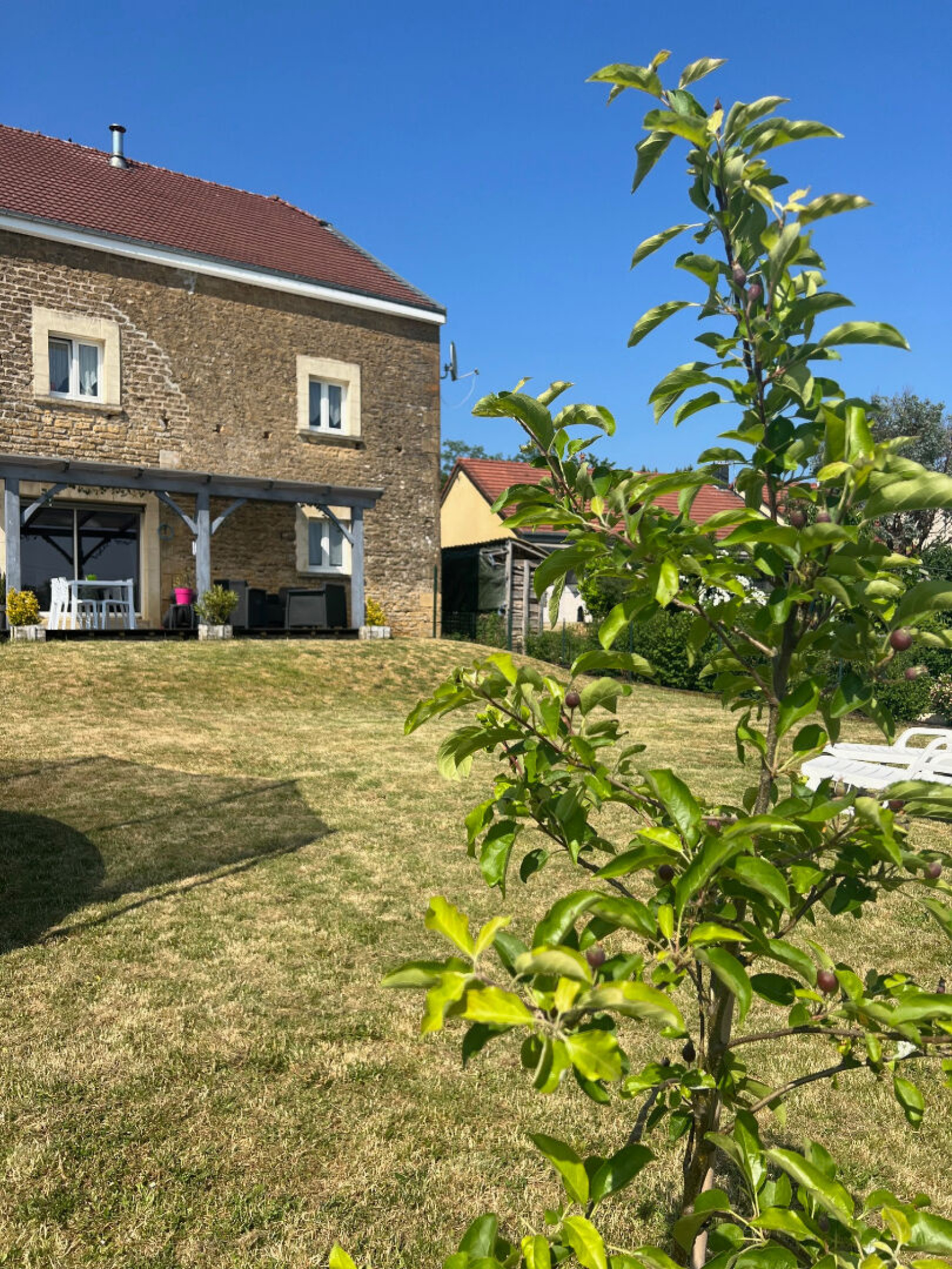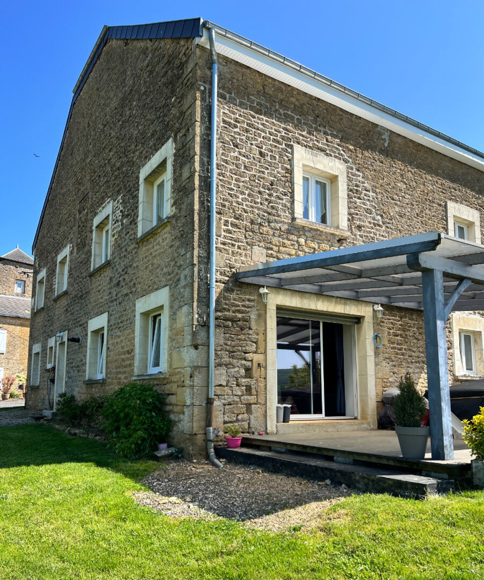 Cheveuges (08350)Coup de coeur pour cette maison de village en pierres : chaleureuse et atypique, cette maison familiale propose de beaux volumes, un salon séjour de plus de 60 m2, 3 belles chambres, un espace mezzanine, deux wc,1 salle de bains...En prime, un joli terrain et une terrasse protégée par une pergola récente ! -