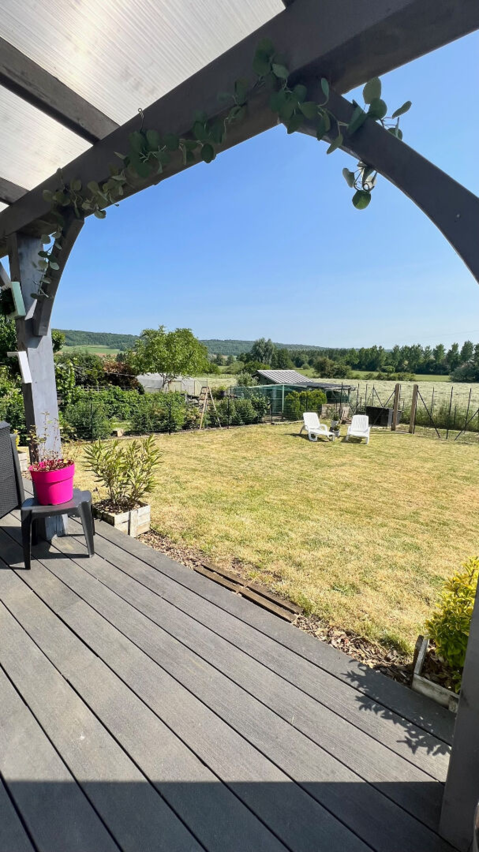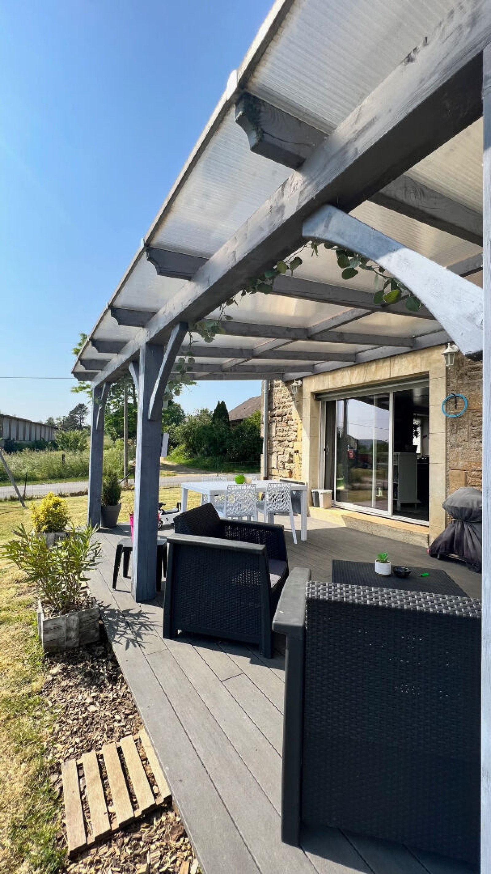 Toiture: neuve DV PVC O.B Pergola et terrasse récentes.