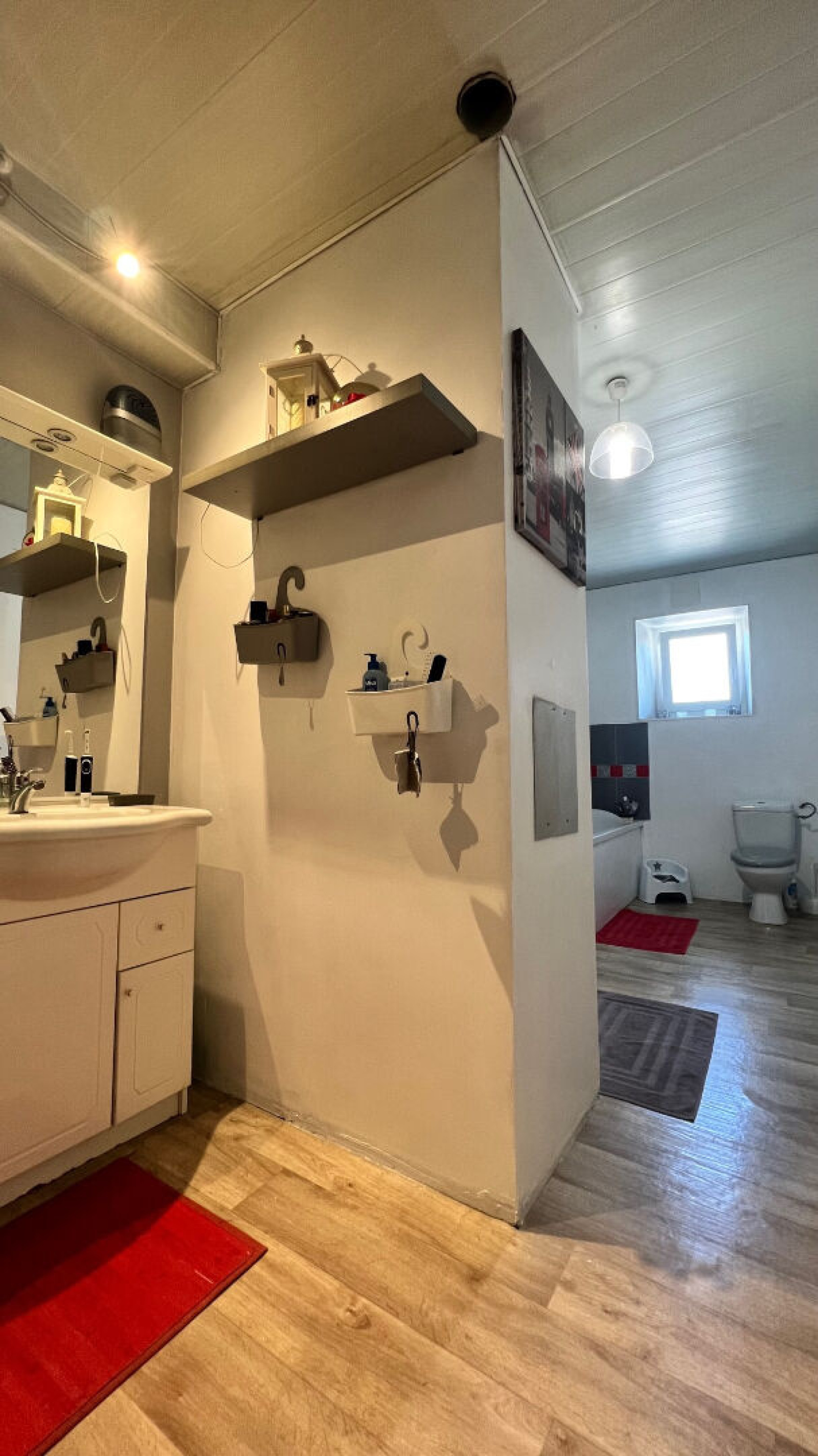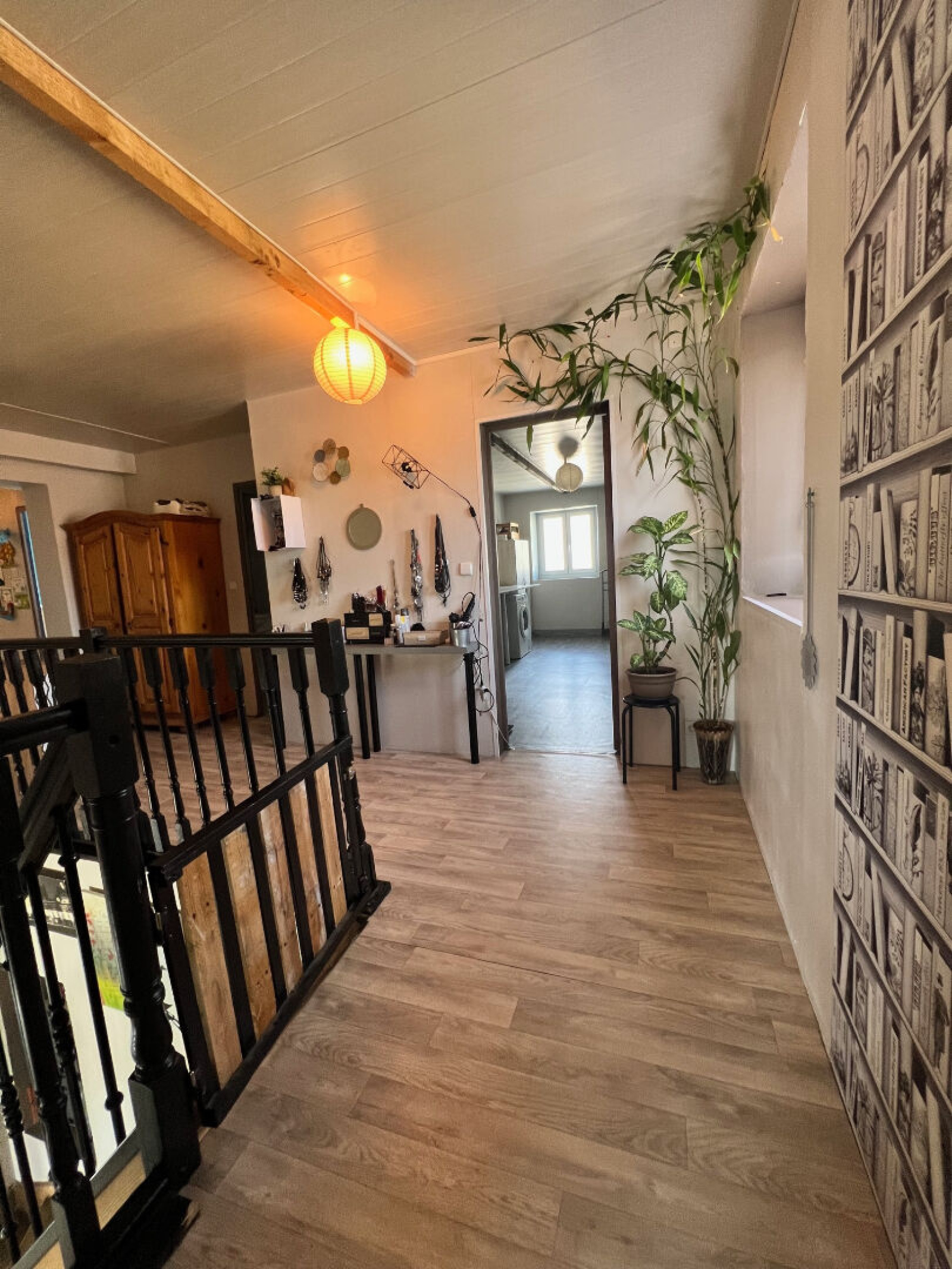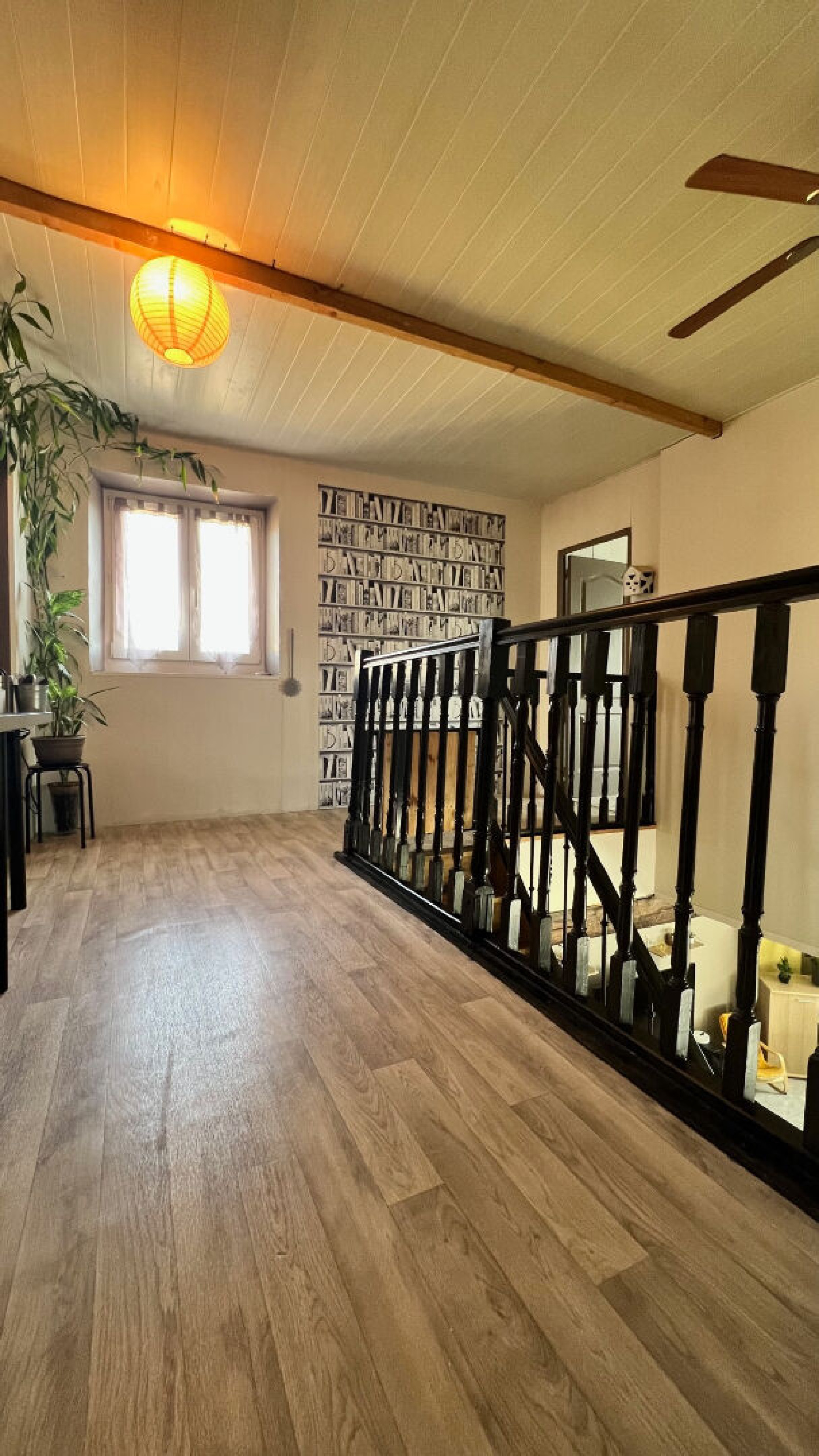 1er étage : palier, mezzanine, trois grandes chambres, salle de bains avec WC.