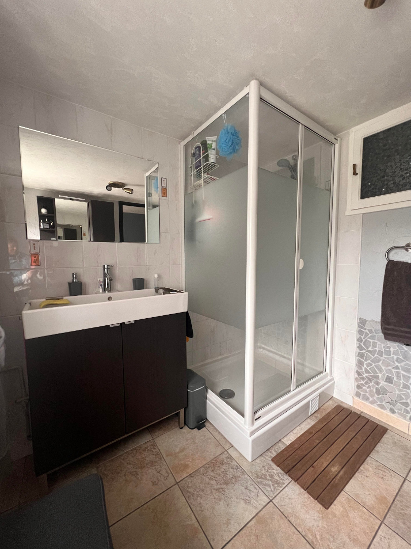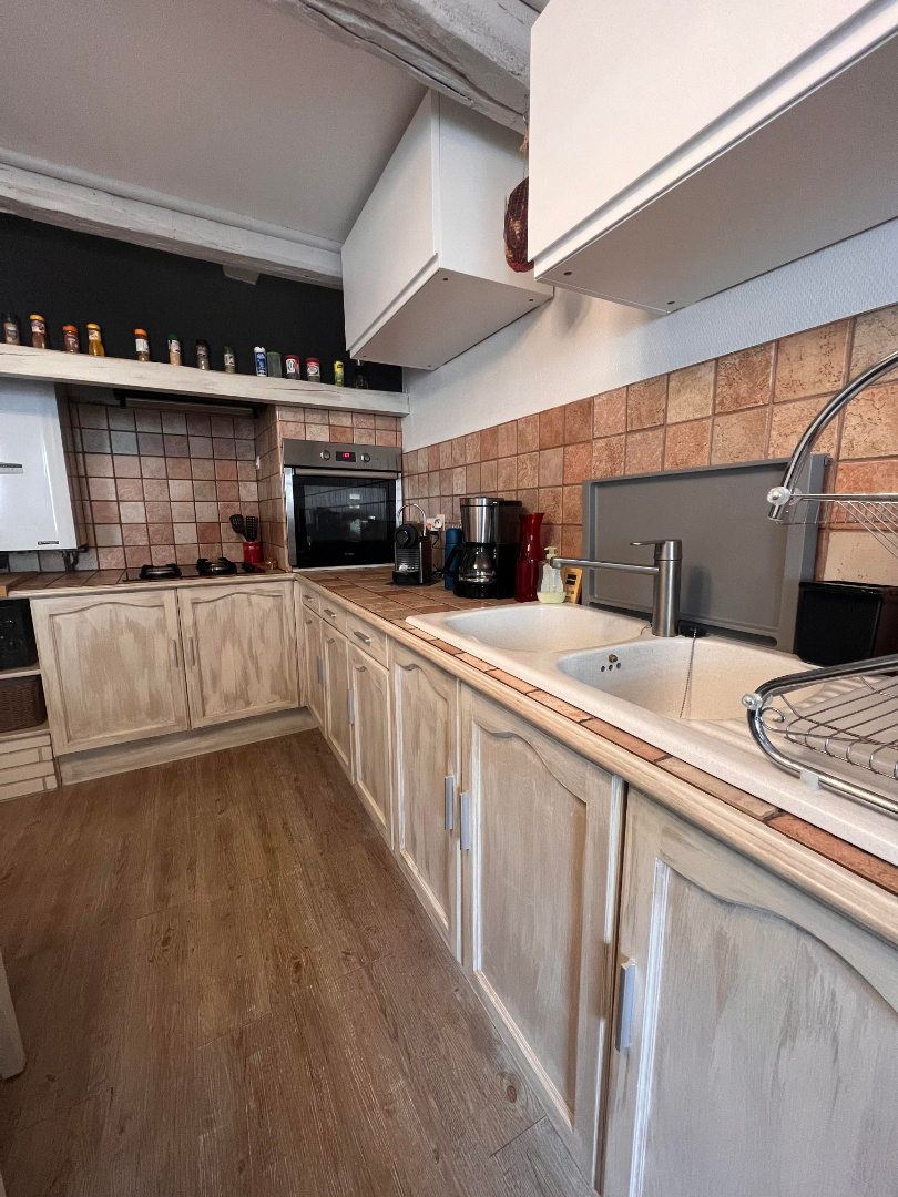 Entrée, cuisine équipée, salon séjour spacieux avec cheminée, dégagement avec dressing et coin lingerie, WC indépendant, salle d'eau avec meuble vasque, une pièce bureau ou chambre, 3 chambres dont une avec dressing.