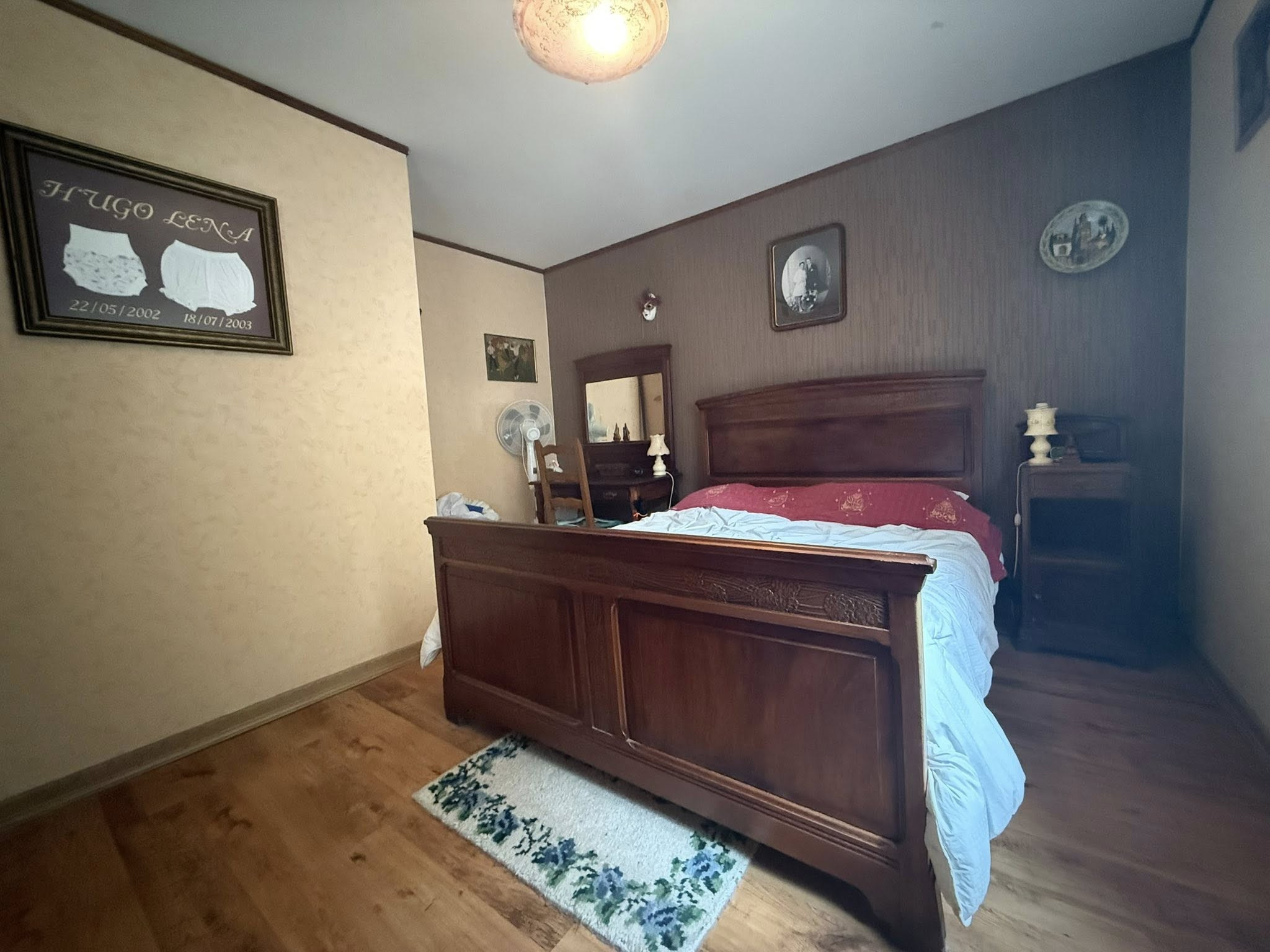 Entrée avec placards, dégagement avec dressing, salon-séjour, cuisine équipée en partie indépendante, salle d'eau, 4 chambres, coin chaufferie, un WC indépendant.