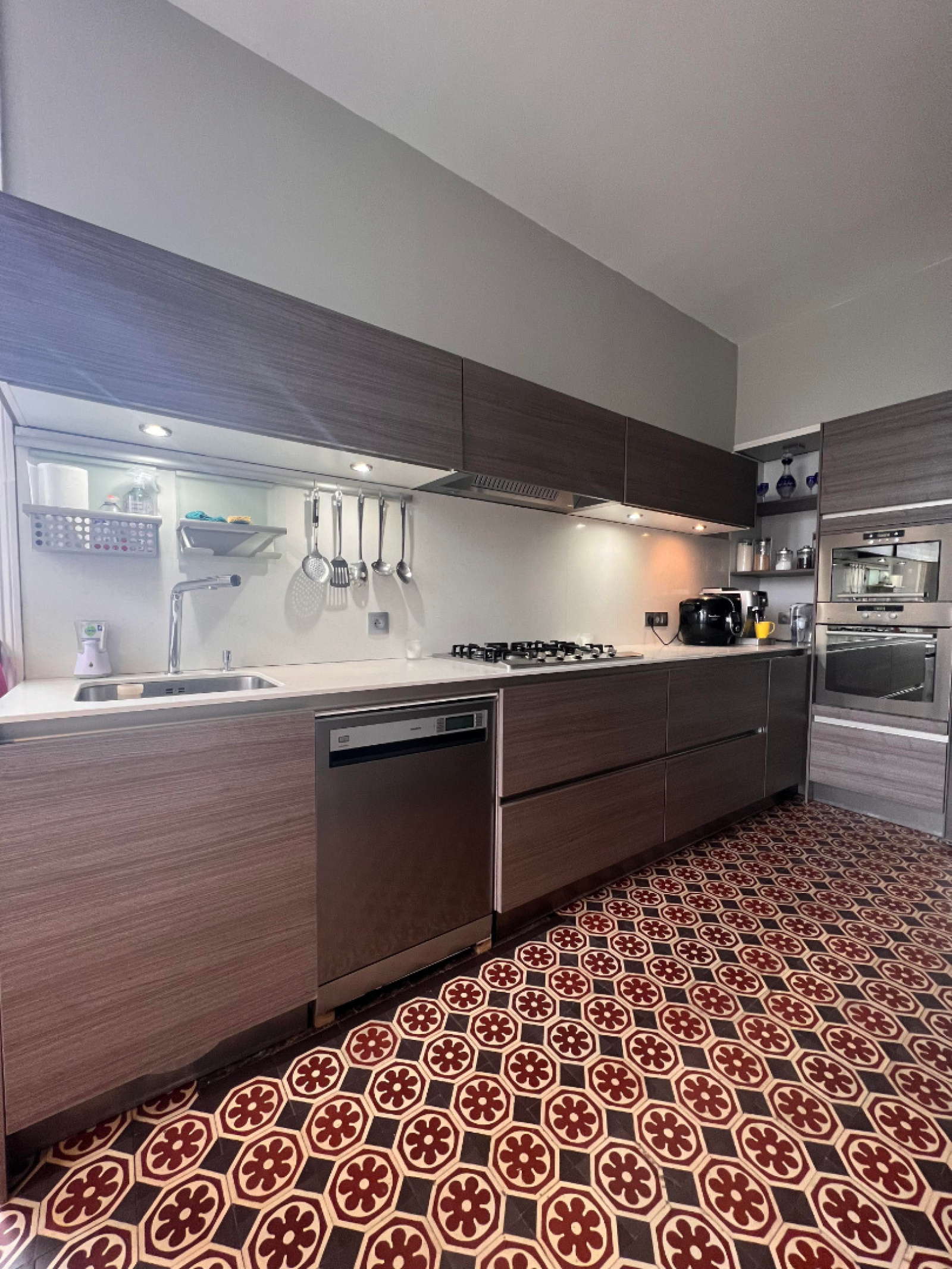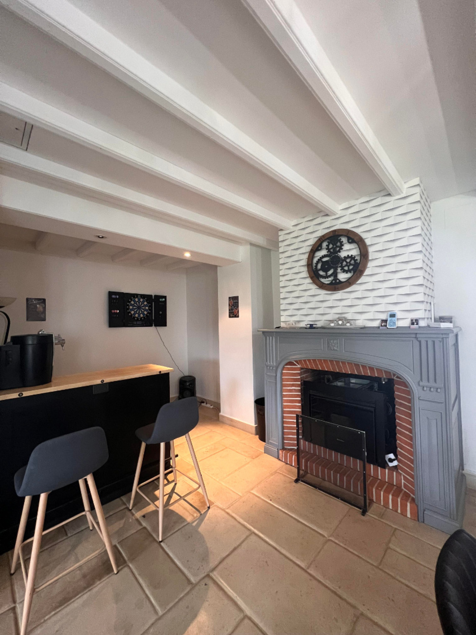 RDC : vaste hall d'entrée, cuisine entièrement équipée, pièce de vie spacieuse : salon/séjour, cheminée-âtre avec accès sur terrasse et piscine couverte chauffée.