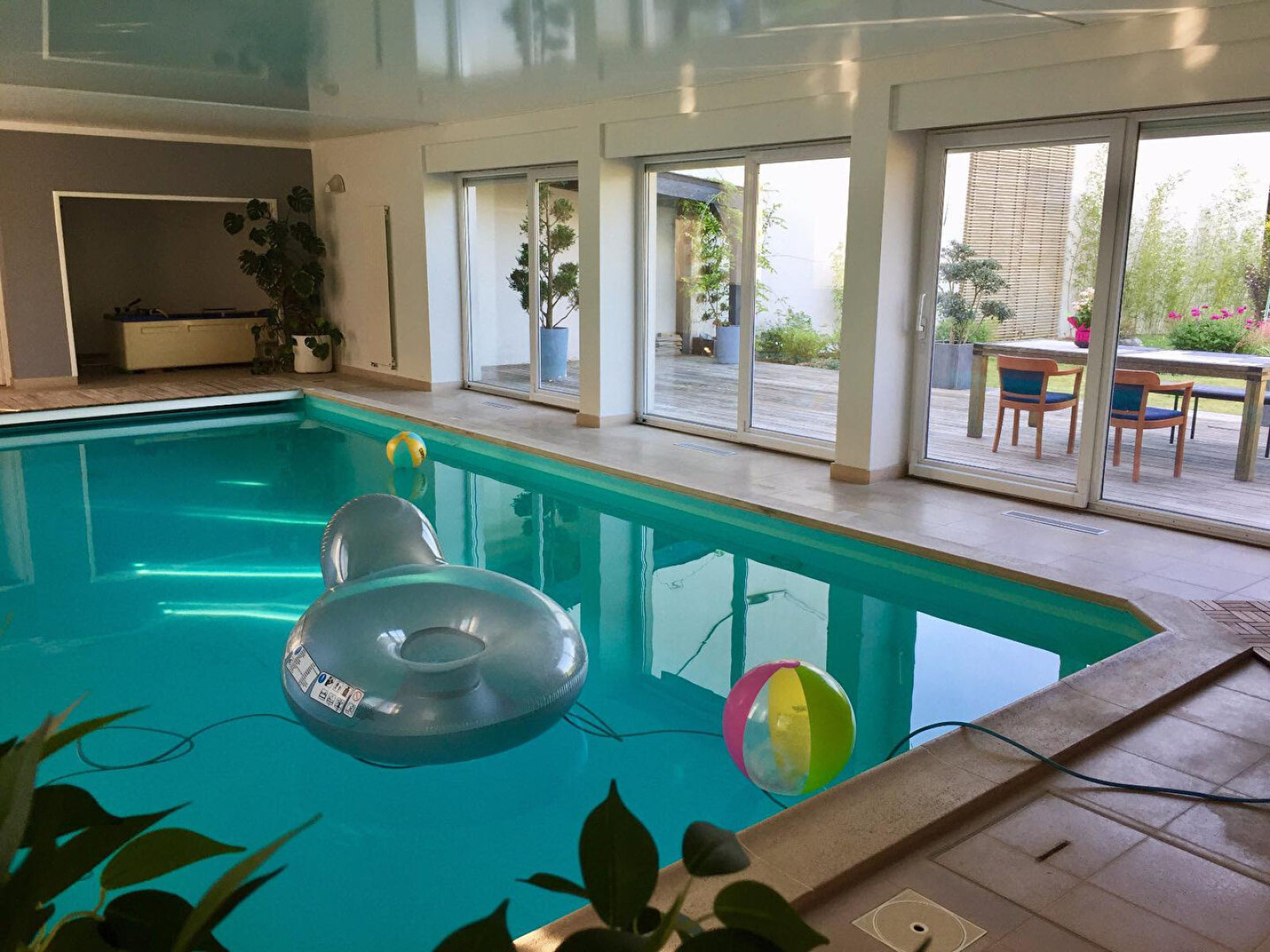 Terrain clos et terrasse (2965 m²), remise. Piscine couverte, chauffée et sécurisée.