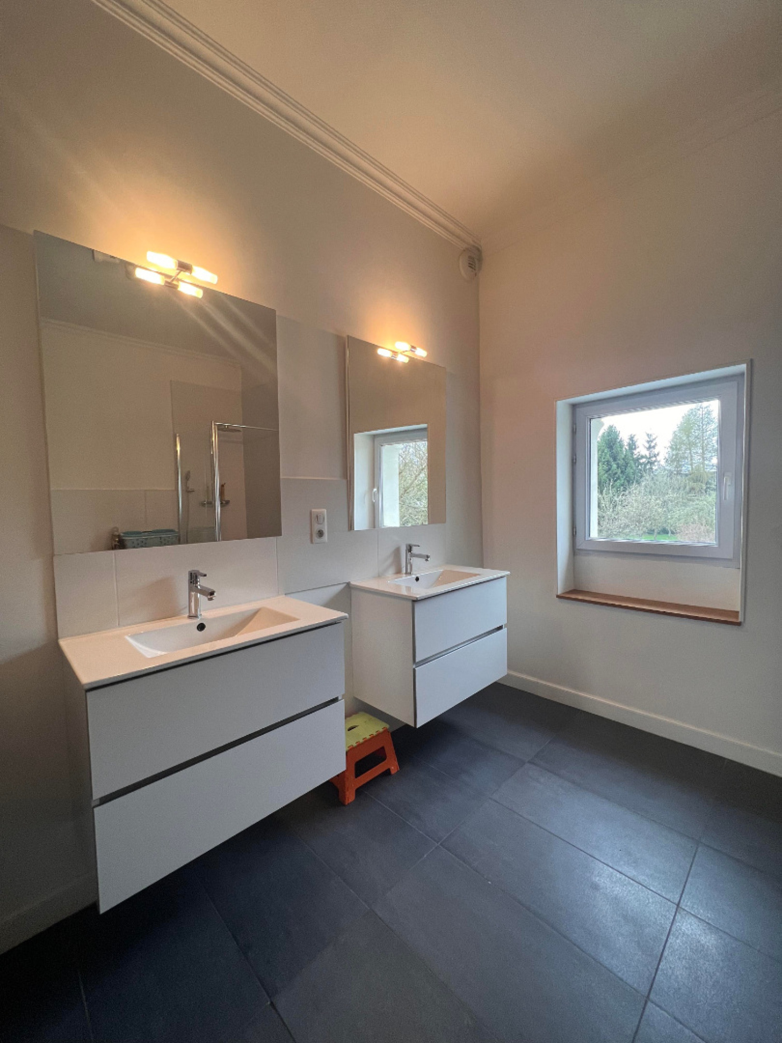 1er étage : Palier, 3 chambres, lingerie, vaste pièce (salle de jeux, salle de cinéma) , salle de bain (baignoire et douche) ,WC, salle d'eau.