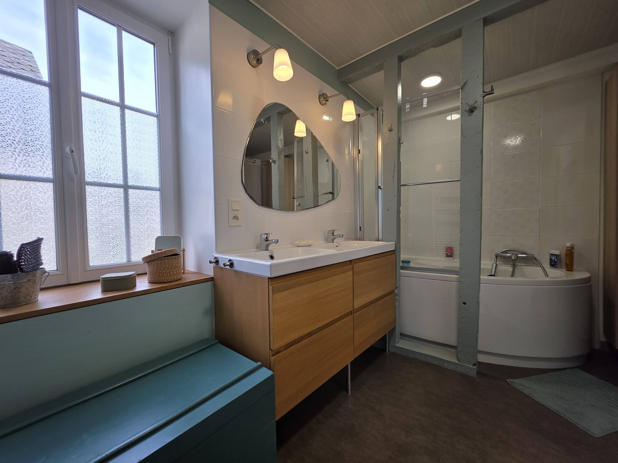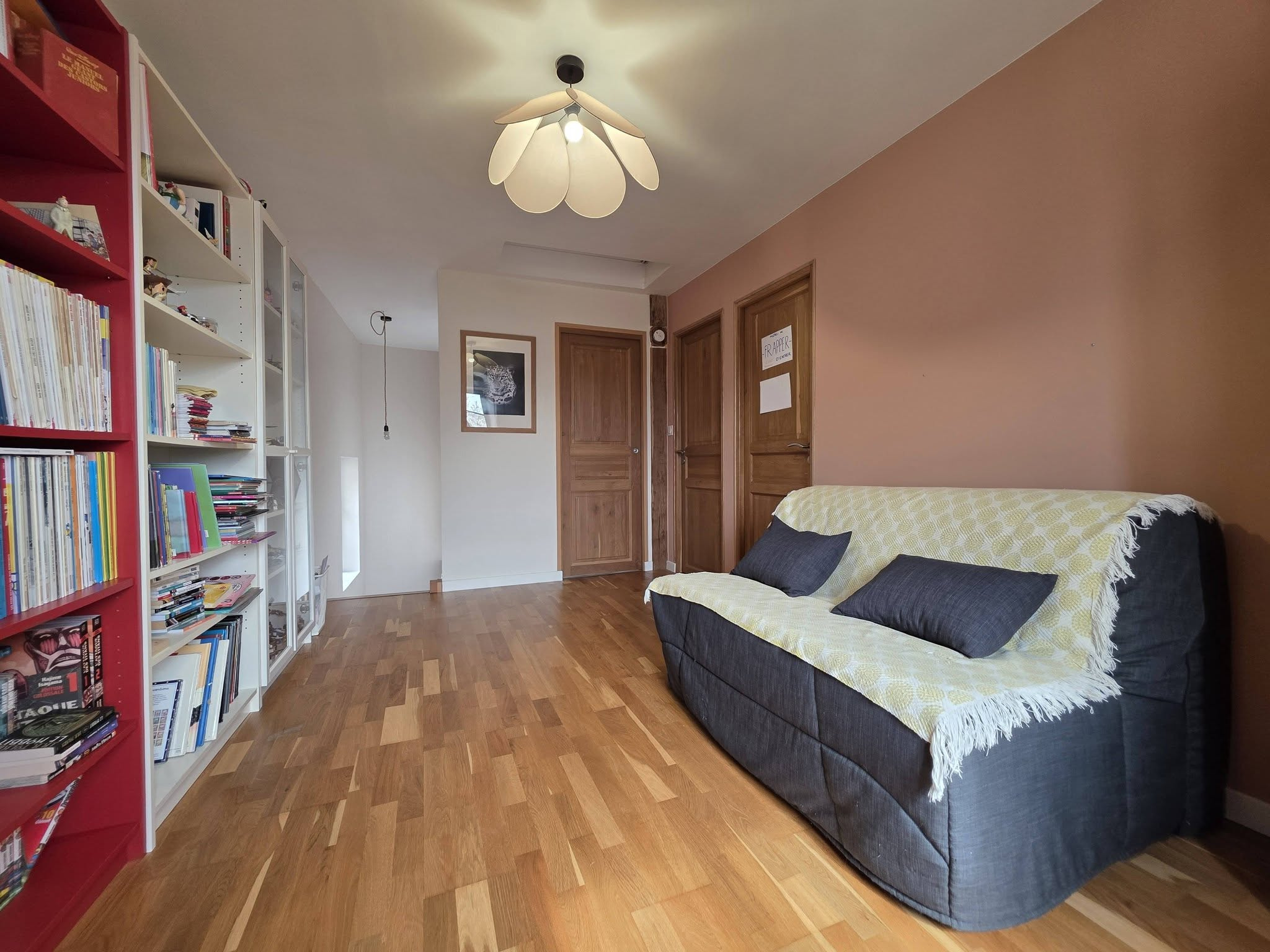 1er étage : 1 salle de bain avec douche et baignoire, 4 chambres, 1 WC indépendant, une pièce actuellement dédiée au sport, et une salle d'eau.