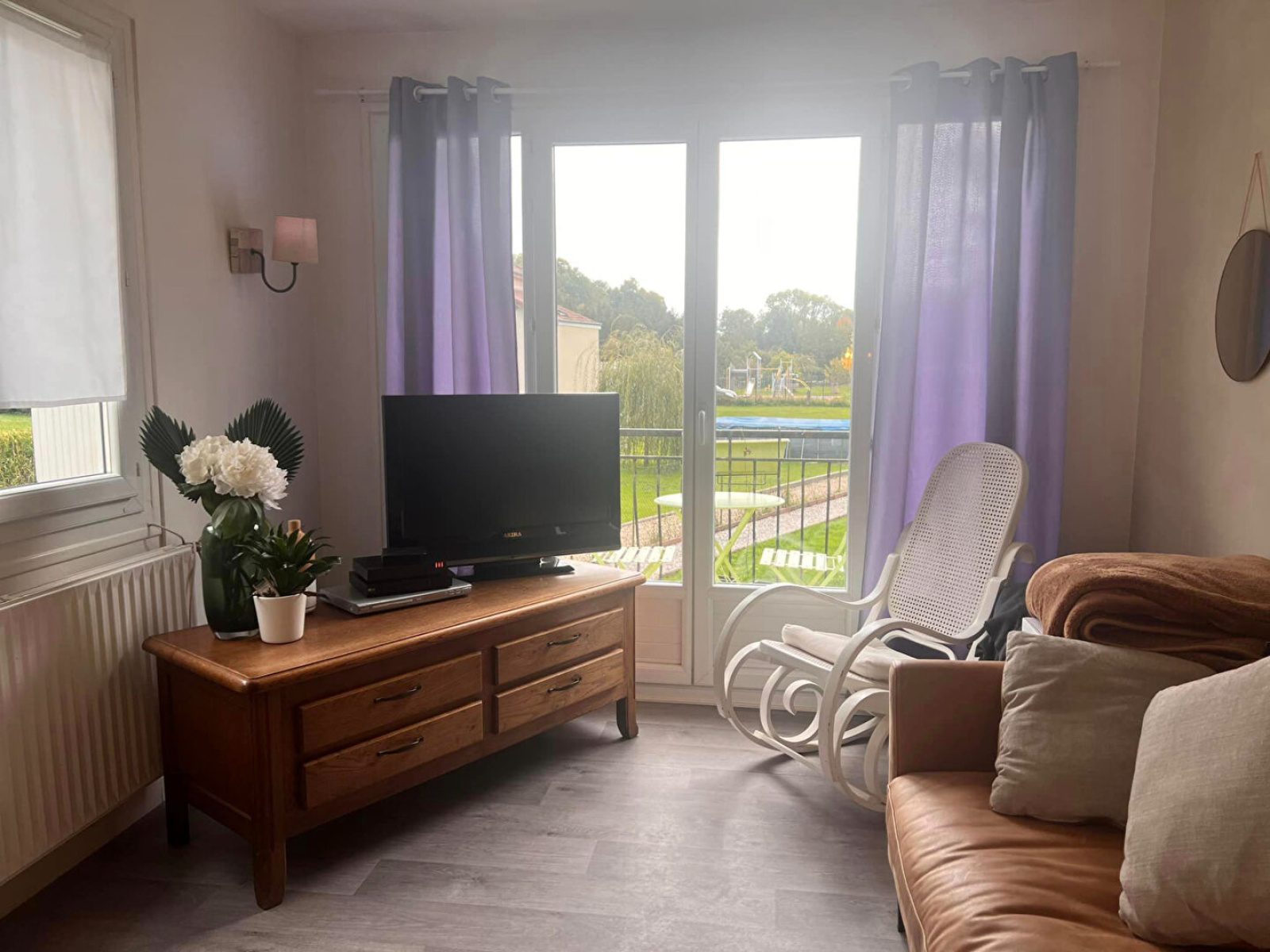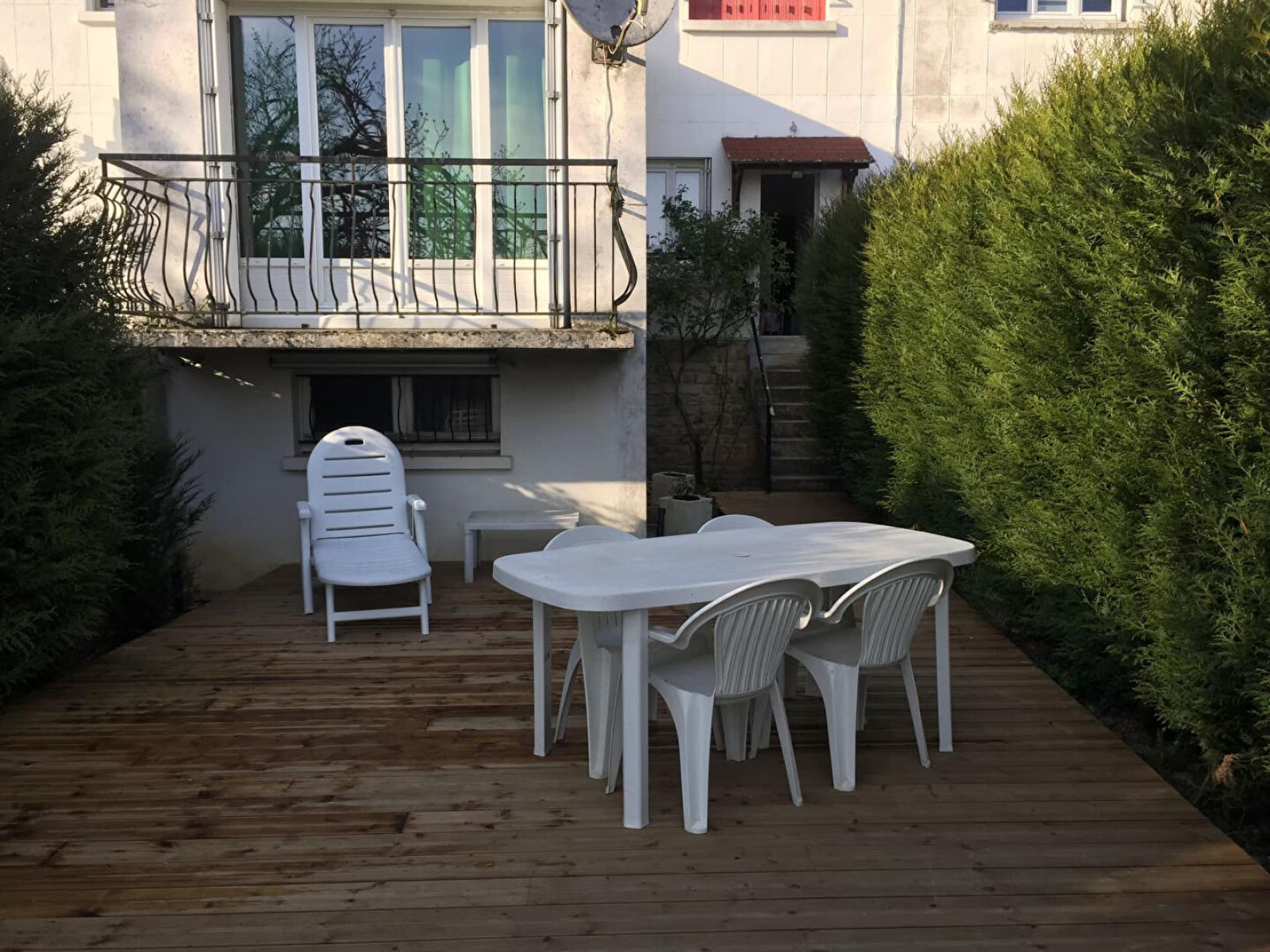 RDC : entrée, salon-séjour avec balcon, cuisine aménagée, wc indépendant, placards, une pièce donnant accès sur le terrain et la terrasse.