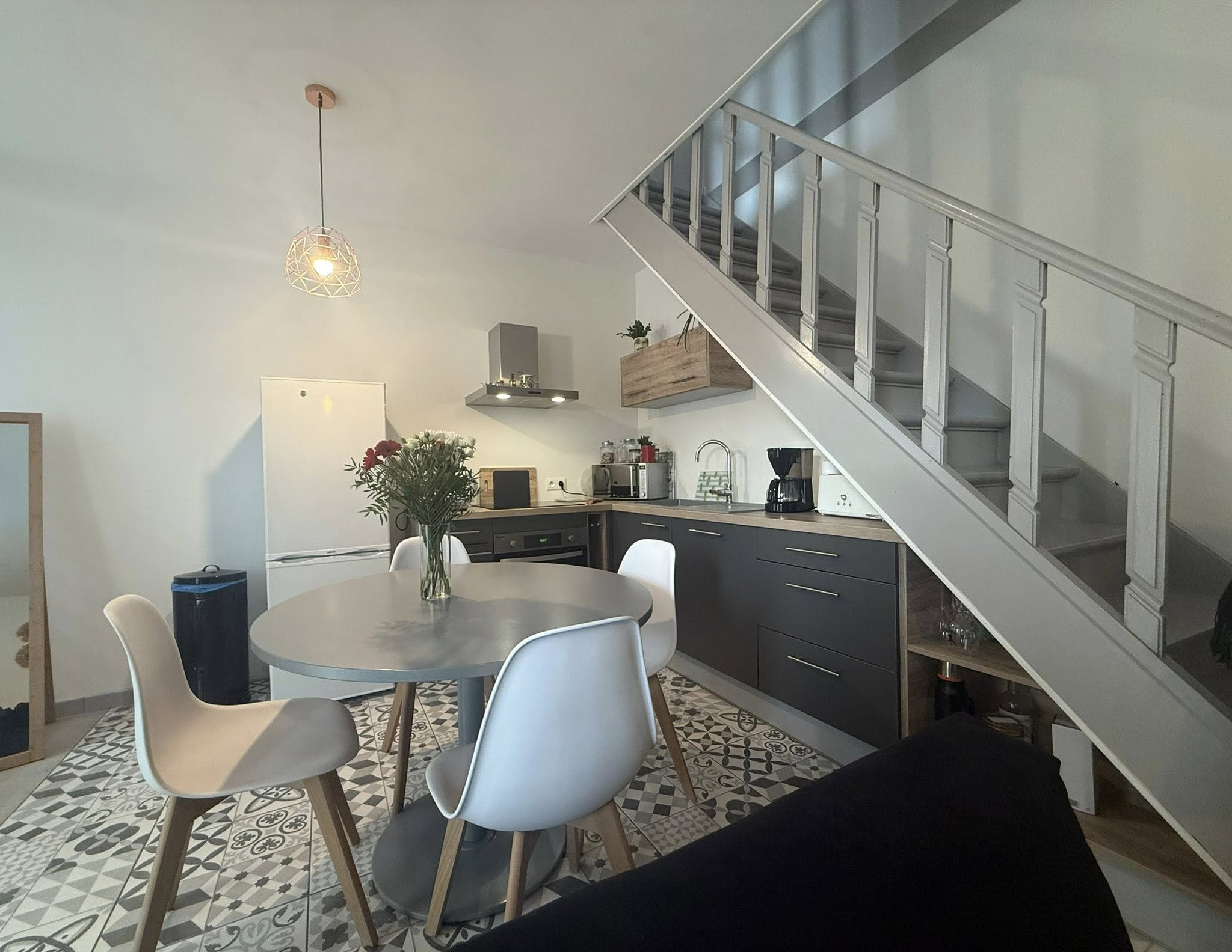 Au rez-de-chaussée, une pièce de vie avec une cuisine ouverte entièrement équipée.