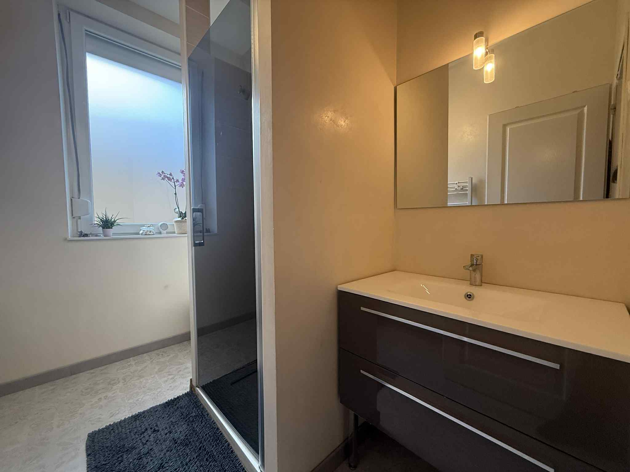 Au 1er étage, un palier deservant une chambre ainsi qu'une salle d'eau avec WC.