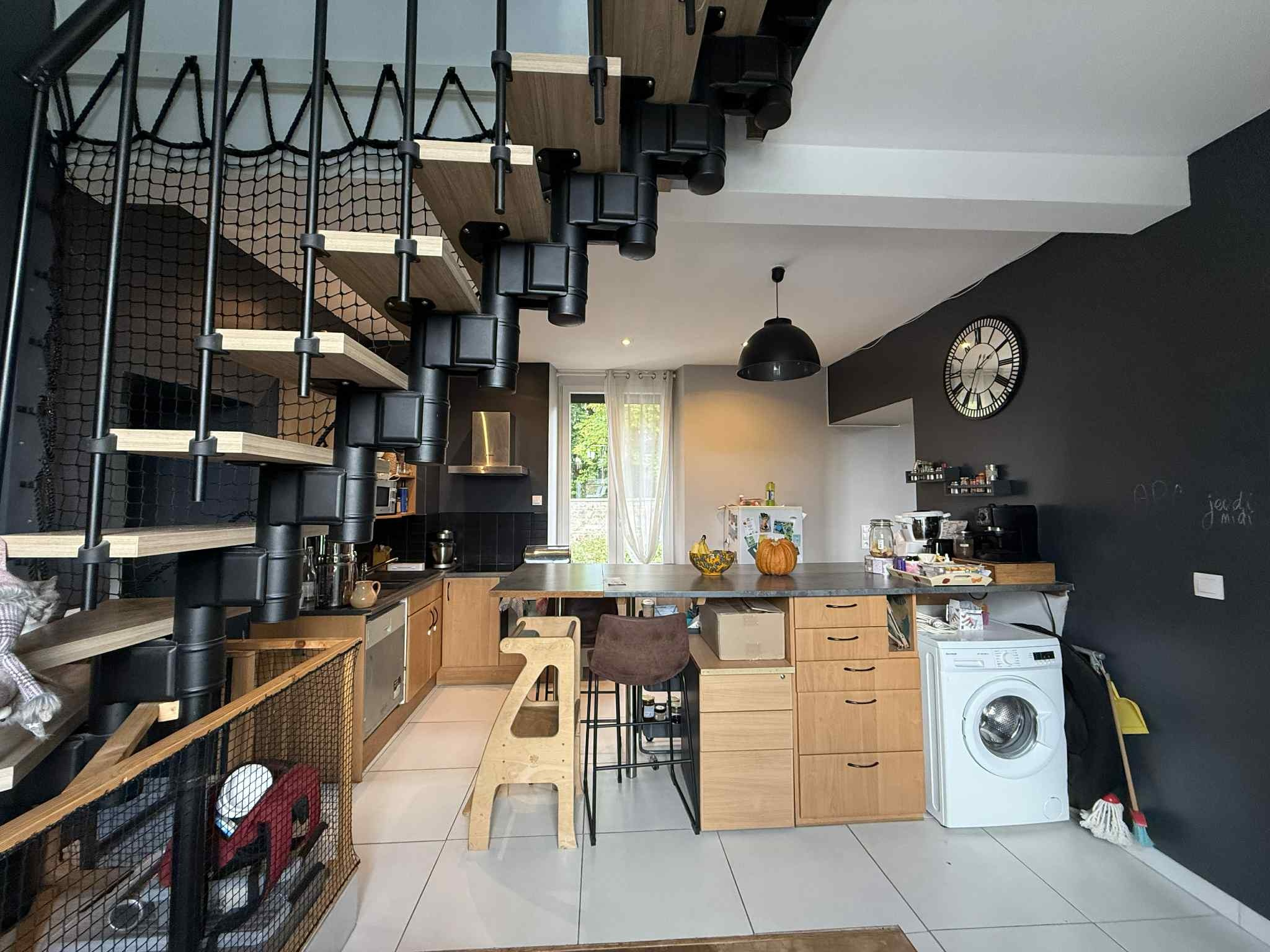 Rez-de-chaussée : Entrée, salon-séjour, cuisine équipée (four, plaque, hotte), couloir, WC indépendant, une seconde entrée avec sas.