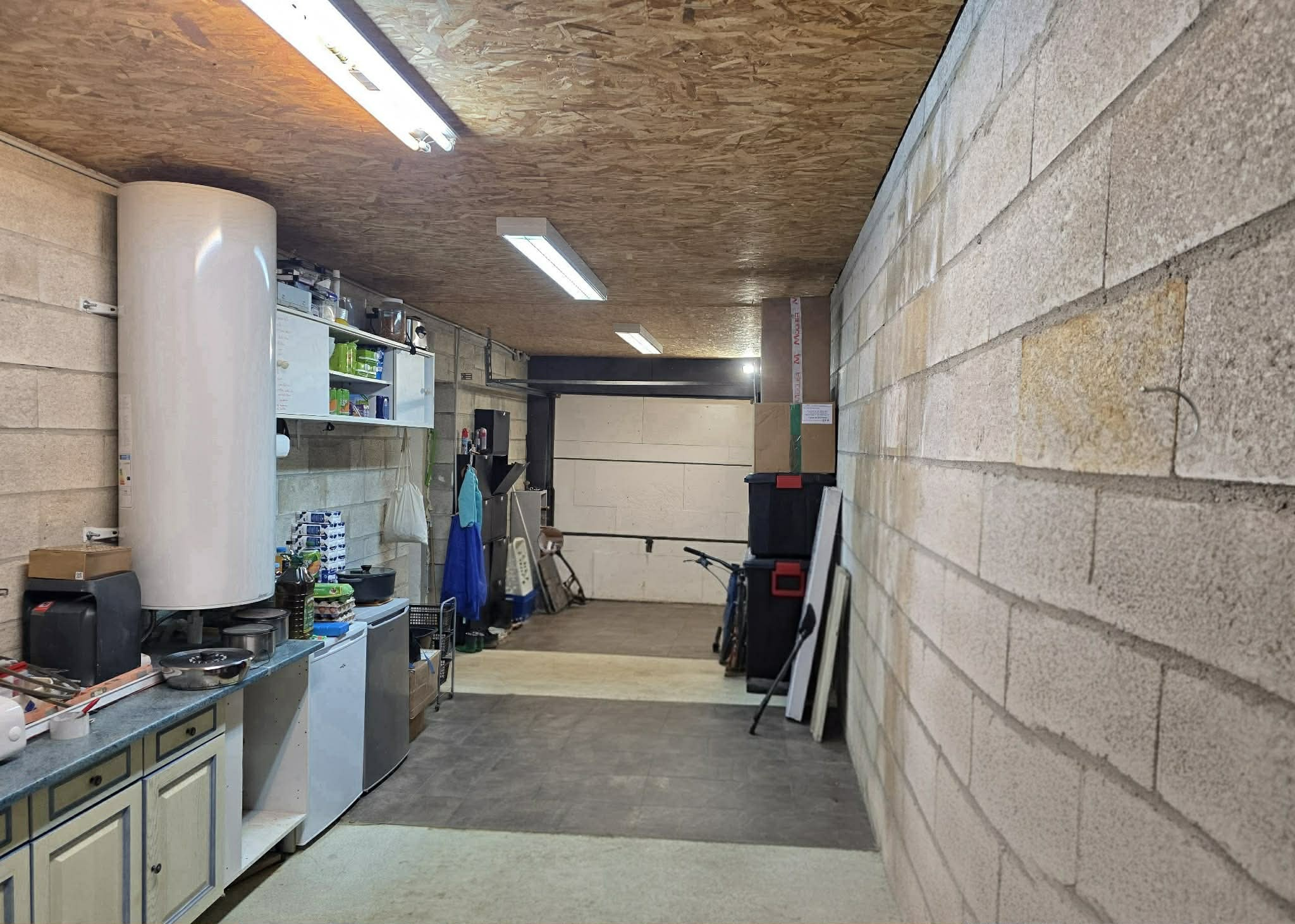 Rez-de-chaussée: Entrée, salon salle à manger, avec poêle à granulés, salle de bains, WC.