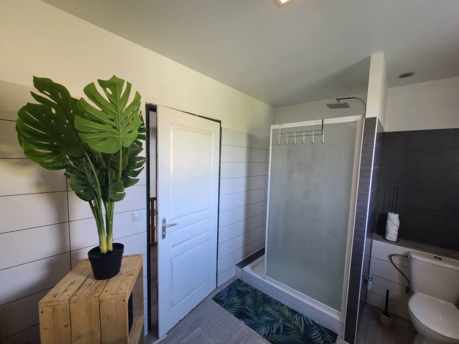 Une salle d'eau avec douche et WC