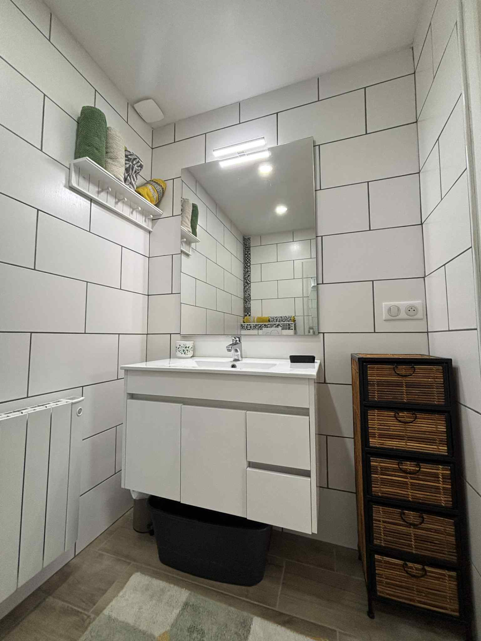 La maison comprend un sous-sol carrelé avec un espace buanderie, une douche ainsi que de nombreux rangements.