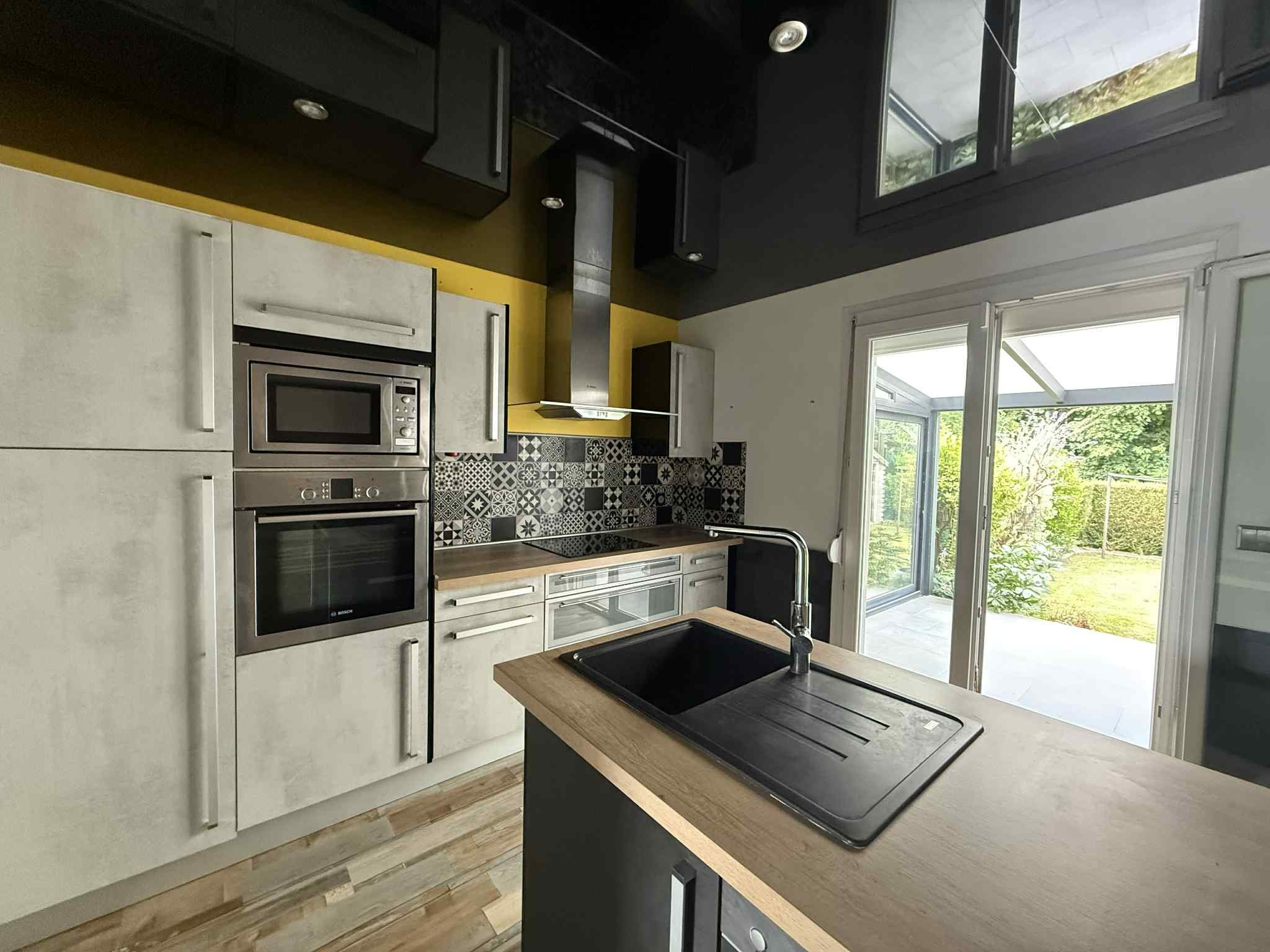 Rez-de-chaussée : Entrée, WC indépendant, salon séjour ouvert sur cuisine équipée (four, plaque, hotte, micro-ondes, lave-vaisselle, réfrigérateur) accès pergola et terrain, une pièce buanderie avec placard, une pièce.