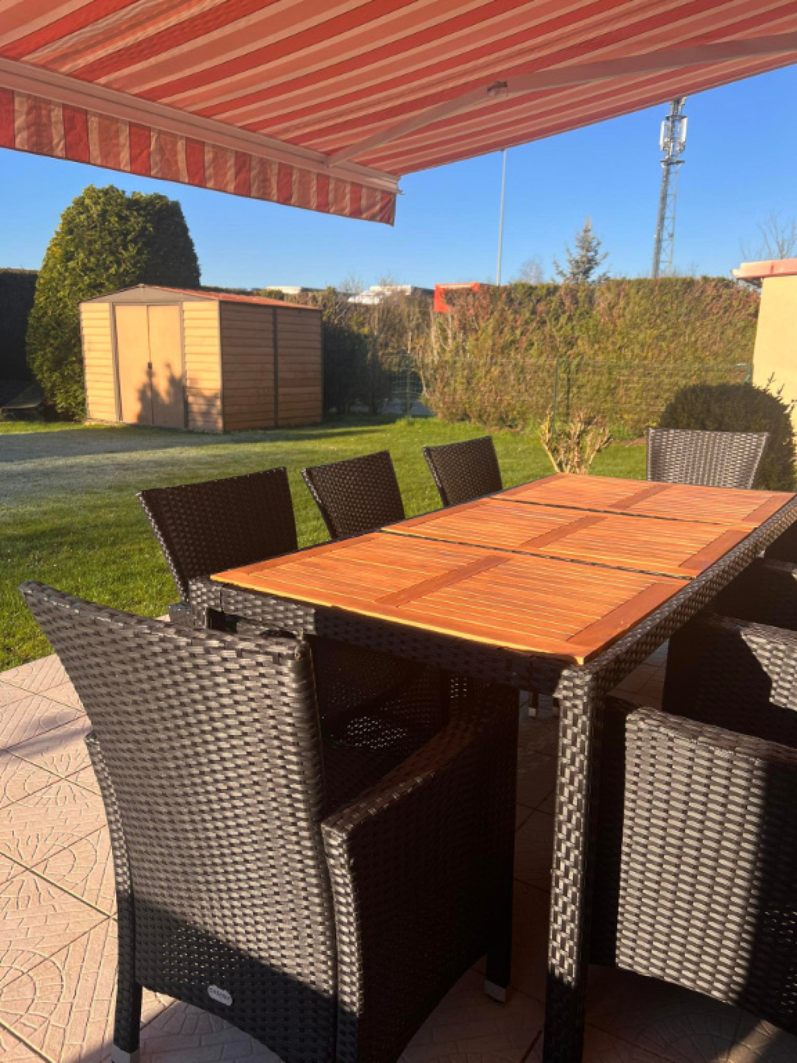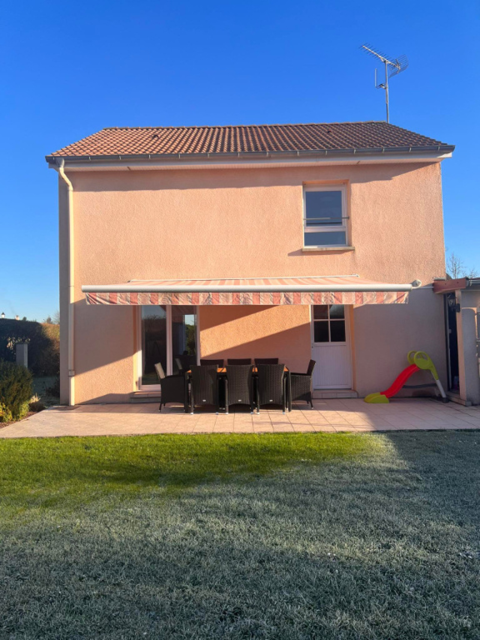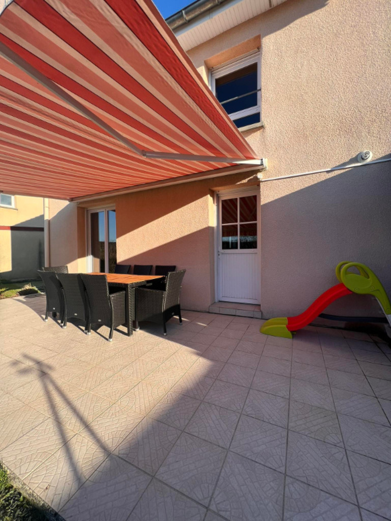 DV PVC + volets roulants manuels, store ban électrique (terrasse).