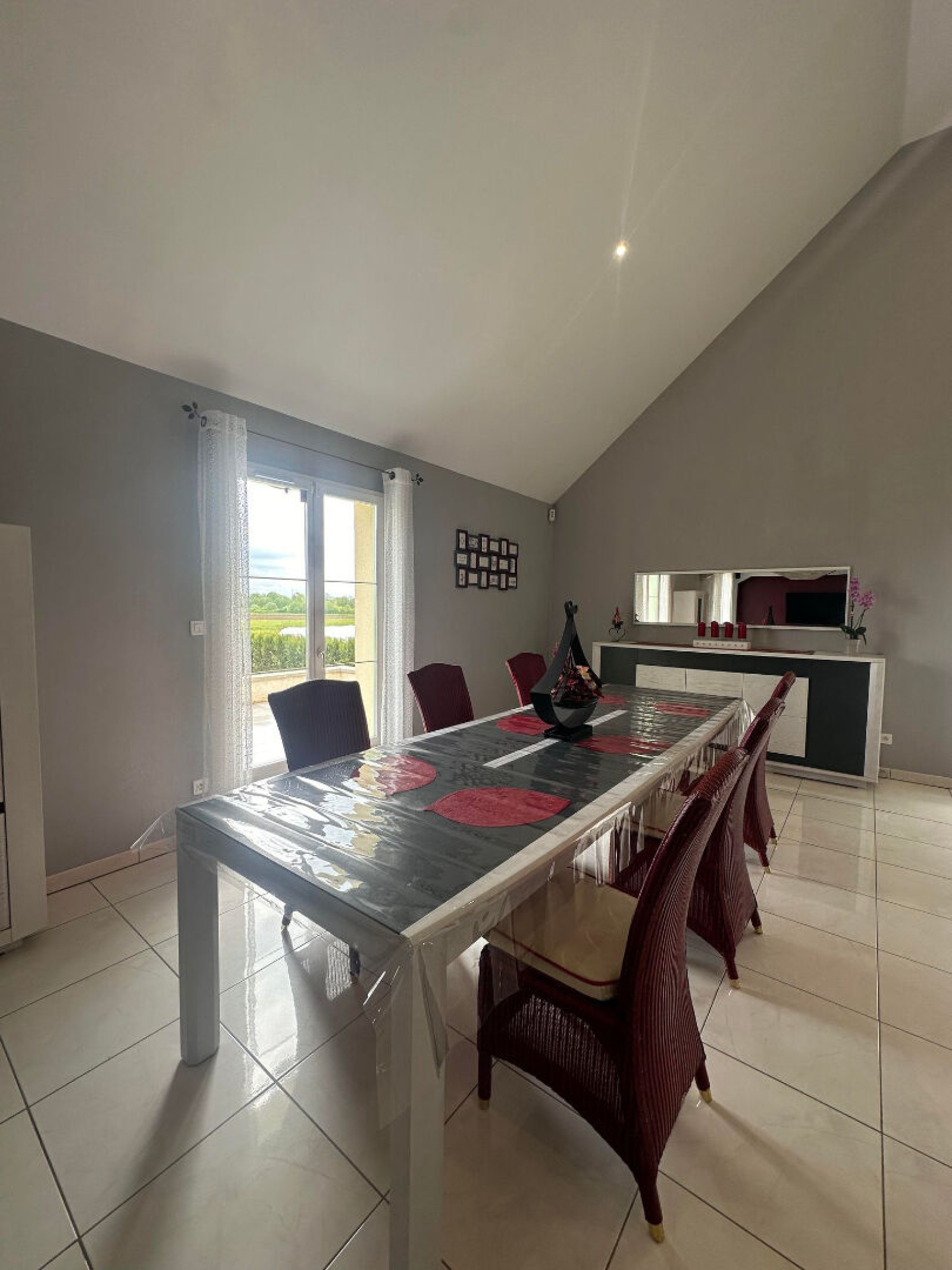 Rez-de-chaussée : Entrée avec placard, un WC indépendant, une cuisine équipée (four, plaque, hotte, micro-ondes, lave-vaisselles) de 16m², une salon-séjour ouvert sur la cuisine de 40m² avec accès terrasse et terrain, une grande buanderie avec placards, un garage de 45m² (porte de garage de 4m électrique) et accès extérieur.
