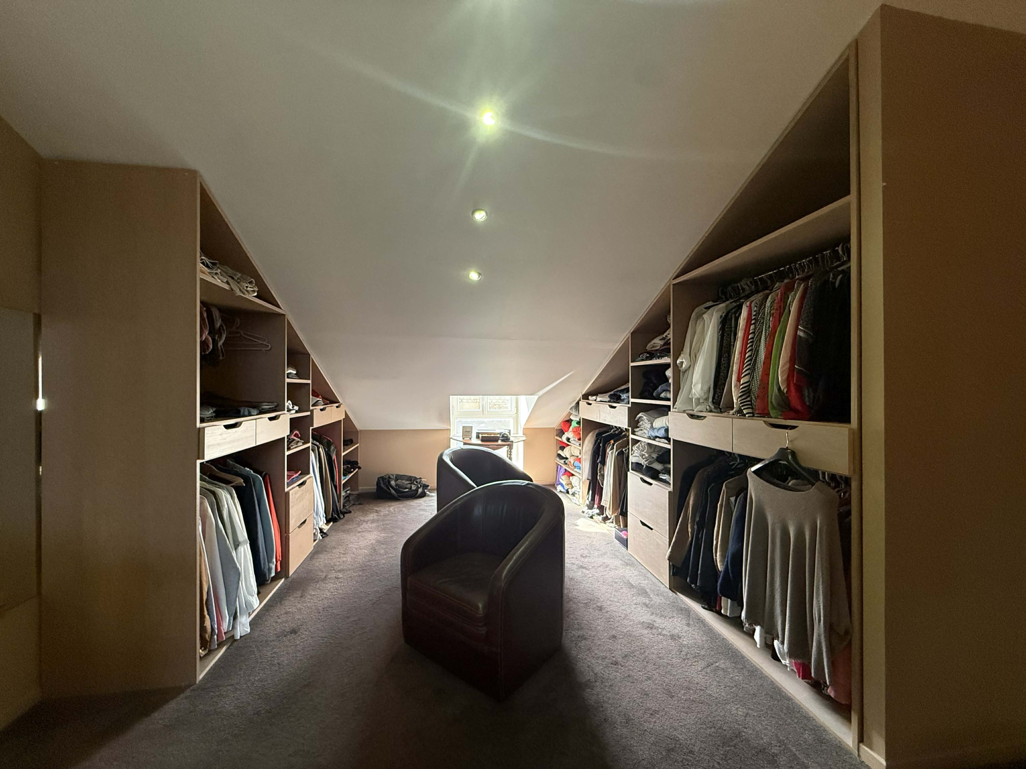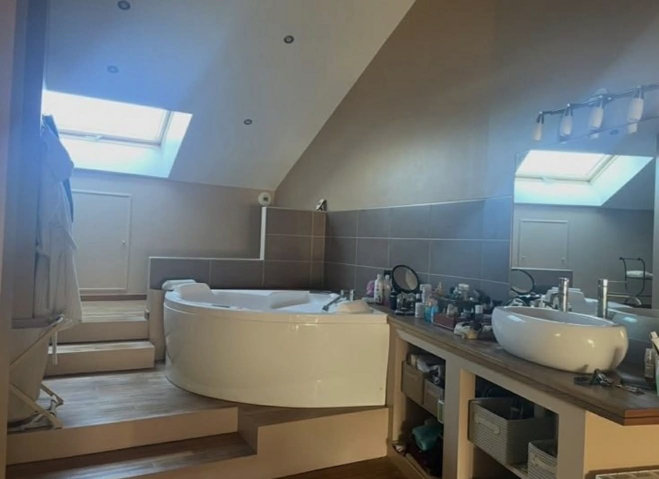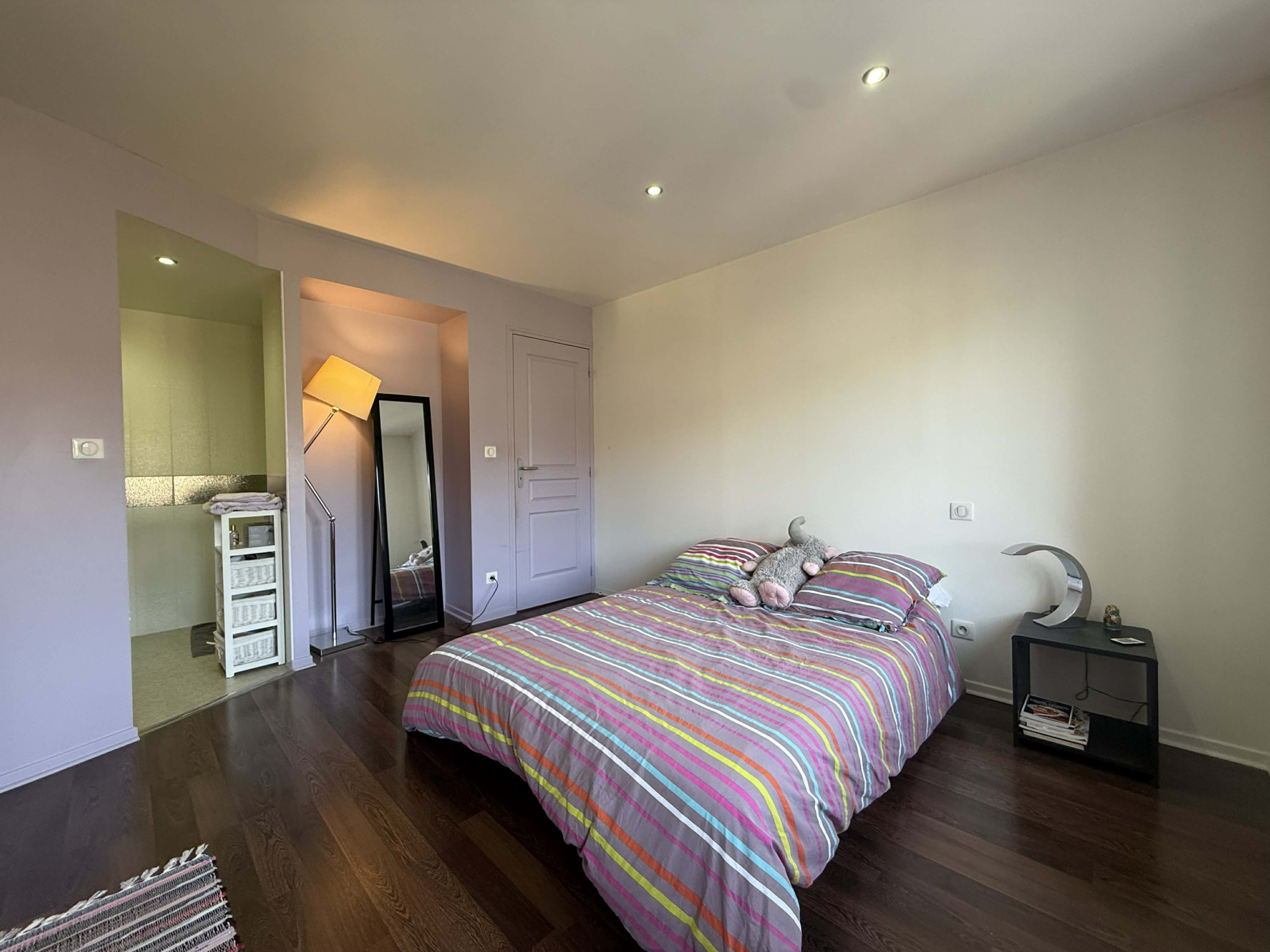 2ème étage : Une magnifique suite parentale avec dressing sur-mesure et douche à l'italienne et baignoire balnéothérapie, une salle de bains (baignoire, balnéo, sèche serviettes).