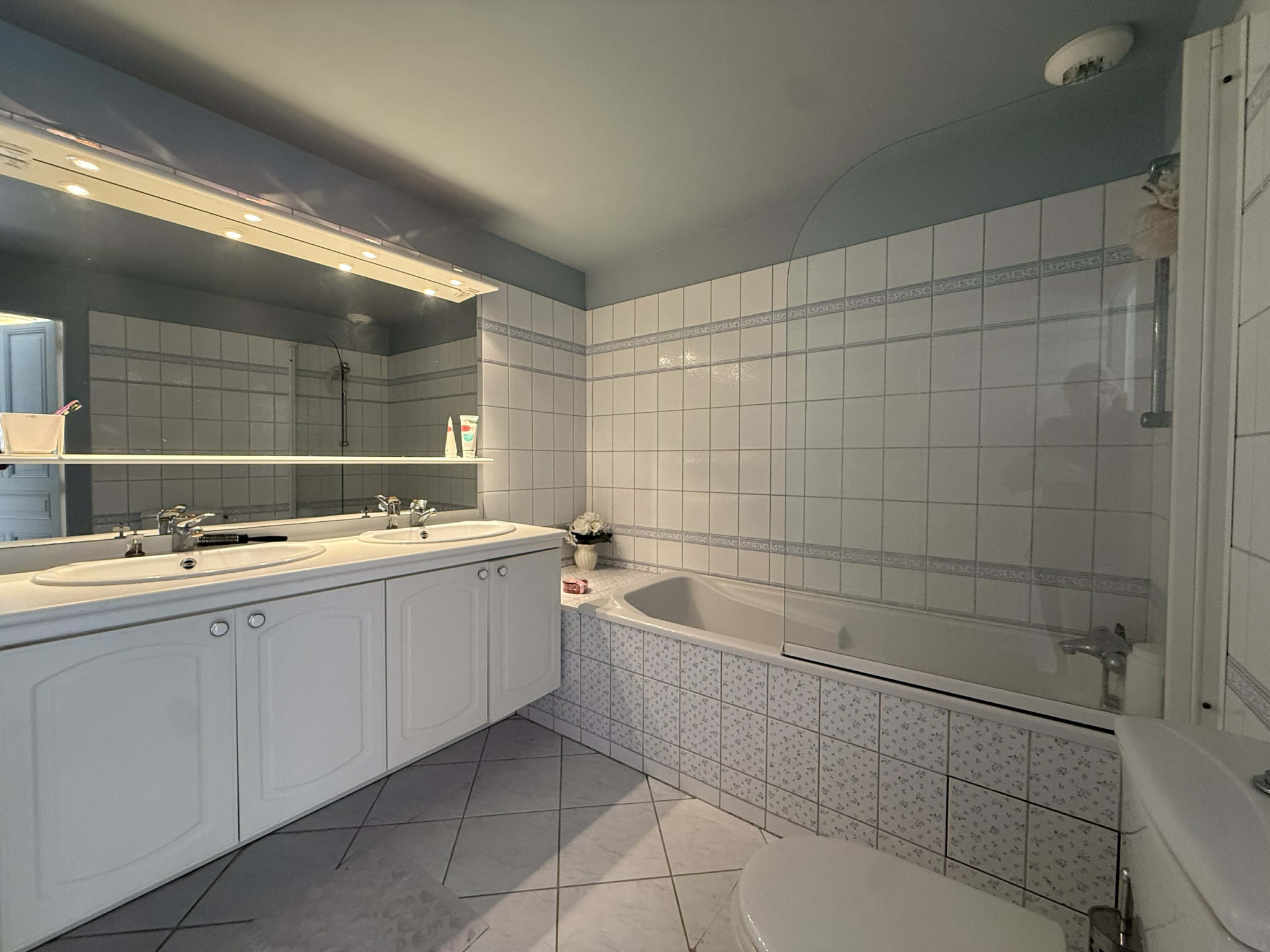 1er étage : Une grande chambre avec salle de bains (double vasque, baignoire, WC), deux chambres avec salle d'eau, une chambre avec salle d'eau.
