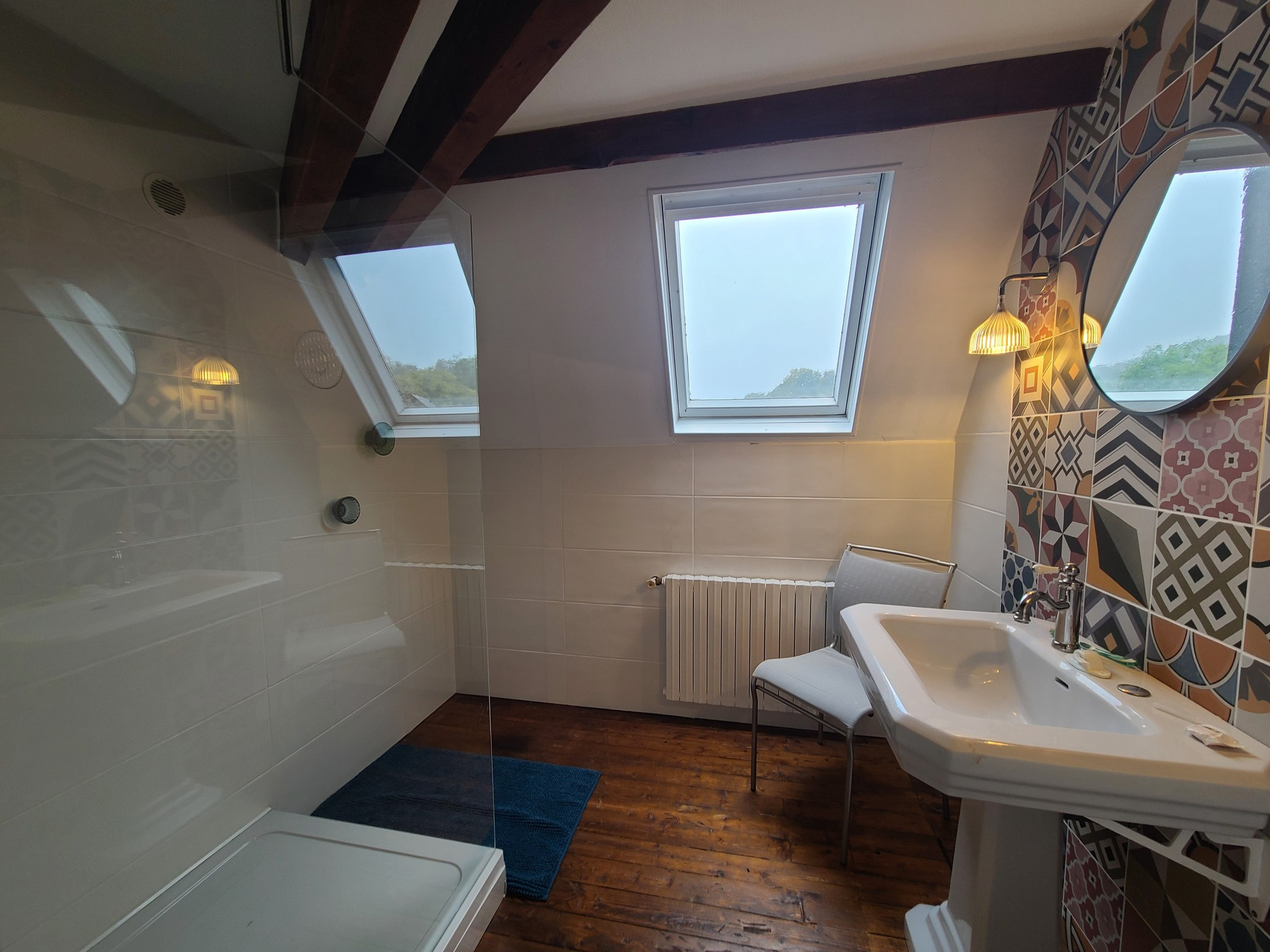 Un palier desservant 2 chambres mansardée, salle d'eau avec douche/ WC.