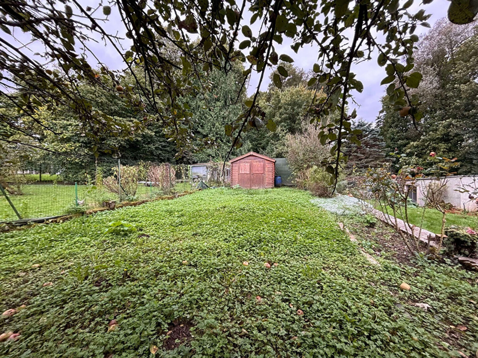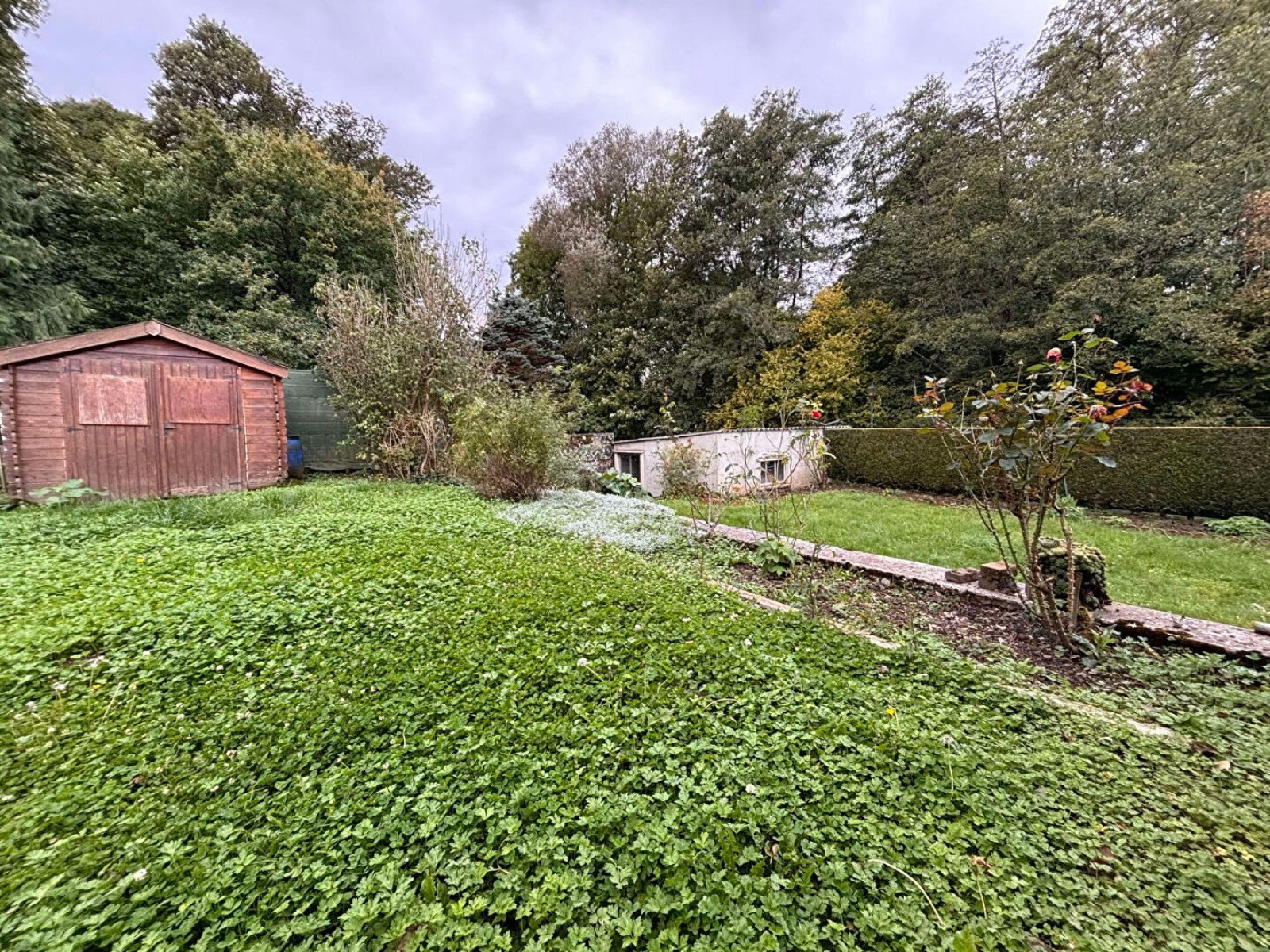 Cave, grenier, un garage porte motorisée (1VL), un abri de jardin, courette, jardin.