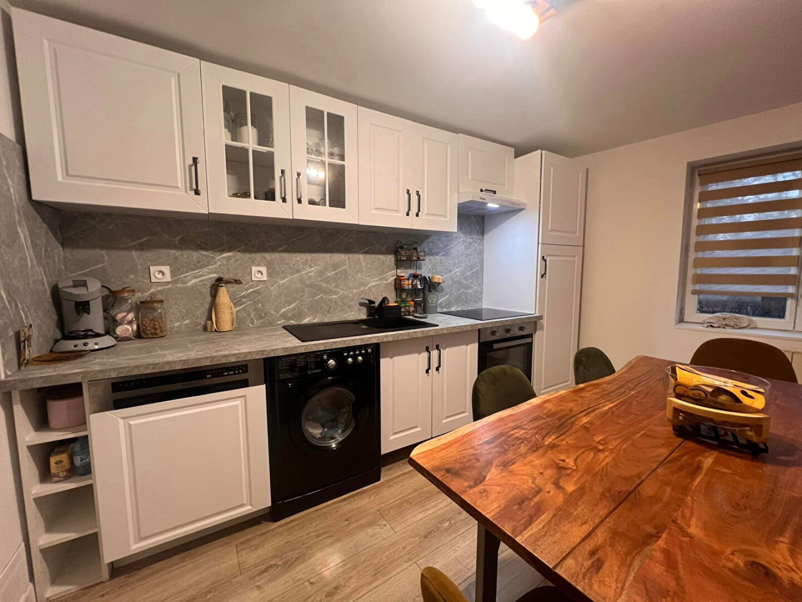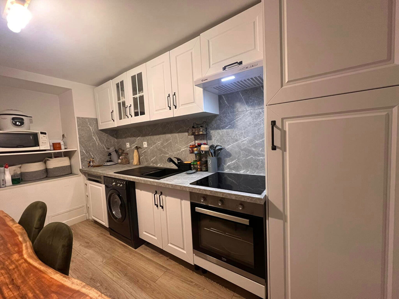 Rez-de-chaussée : Entrée, salon séjour, un WC indépendant, cuisine entièrement équipée récente (four, plaque vitro, lave-vaisselle)