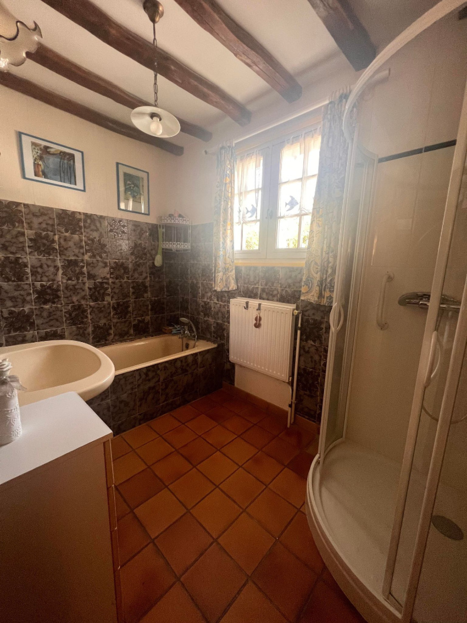 RDC : Vaste entrée, WC indépendant, spacieux salon-séjour avec baie vitrée et accès terrasse (sud), cuisine équipée bois accès terrasse, salle d'eau, un bureau ou une chambre avec placards.