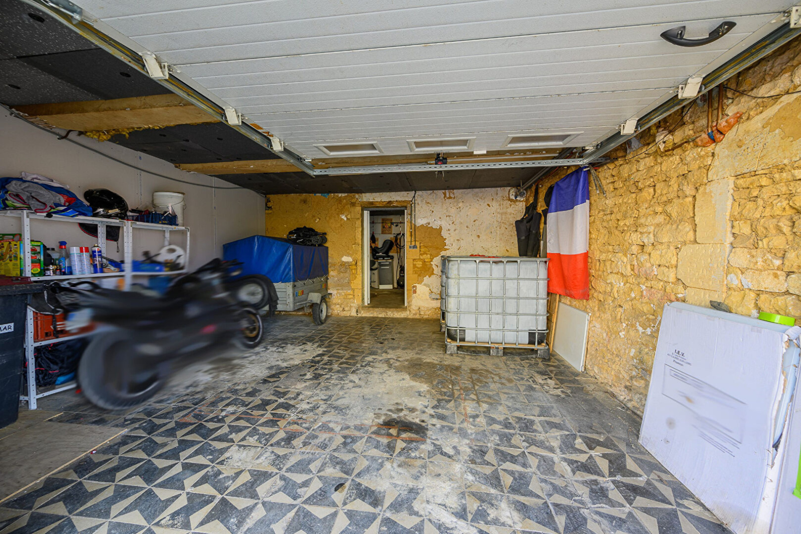 - Rez-de-chaussée : entrée, WC indépendant, lingerie, garage (27 m2) porte motorisée, atelier accès jardin.