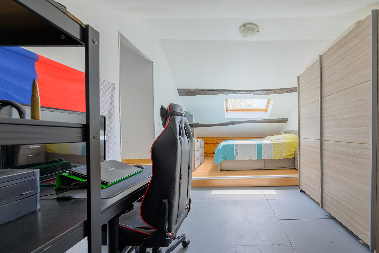 - 2ème étage : palier, 1 débarras, 2 chambres et un bureau (9,10 et 15m2).